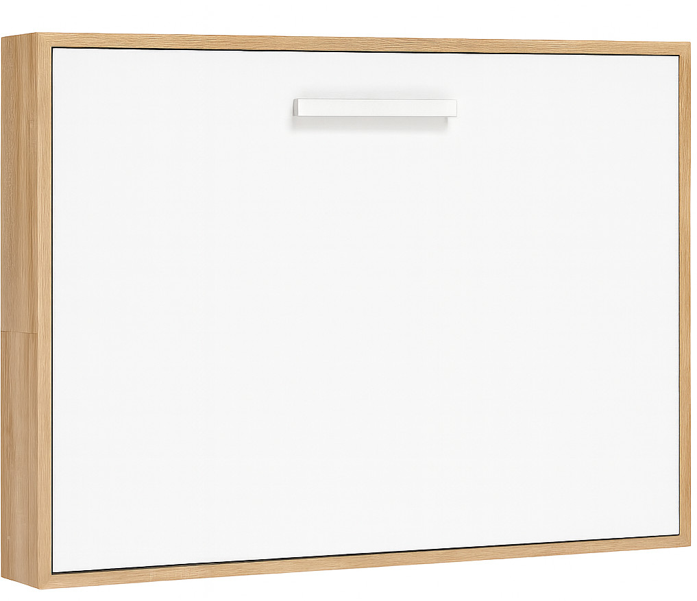 Lit escamotable horizontal OPTIMA-80x180-Cadre Chêne clair-Façade Blanche