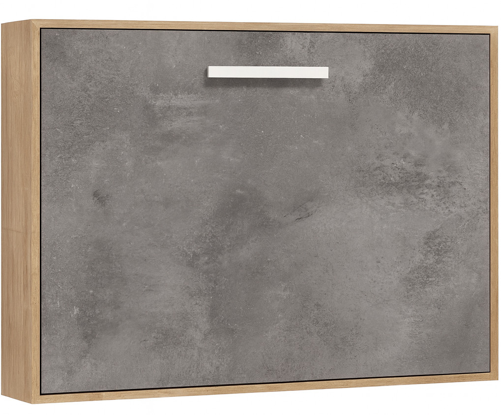 Lit escamotable horizontal OPTIMA-90x180-Cadre Chêne clair-Façade Gris ciment