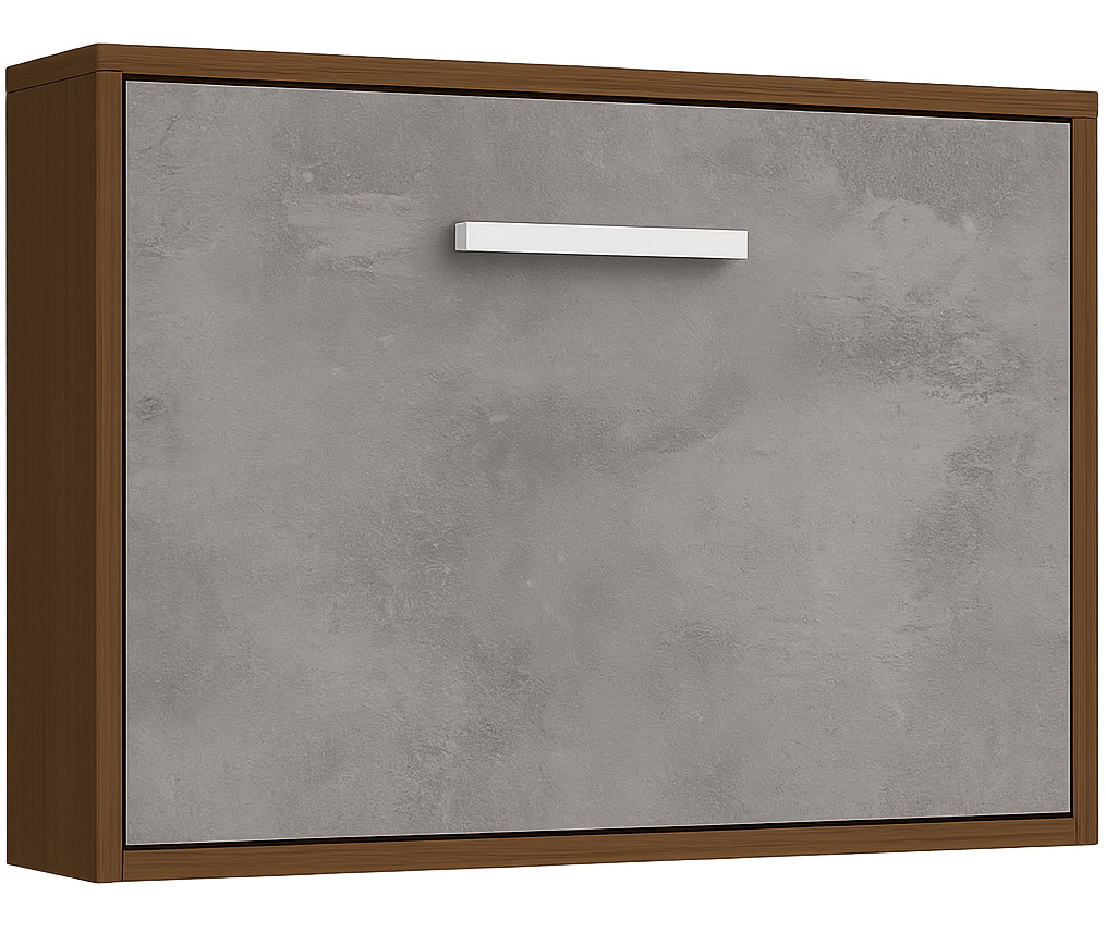 Lit escamotable horizontal OPTIMA-90x180-Cadre Frêne-Façade Gris ciment