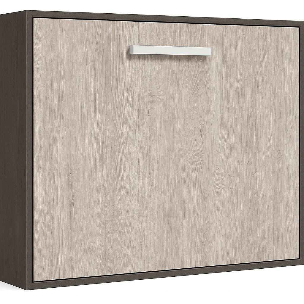Lit escamotable horizontal OPTIMA-90x190-Cadre Anthracite-Façade Chêne gris