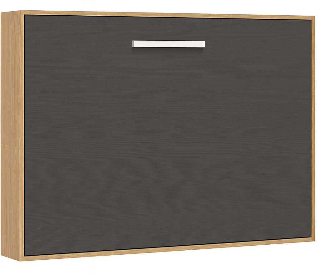 Lit escamotable horizontal OPTIMA-90x200-Cadre Chêne clair-Façade Anthracite