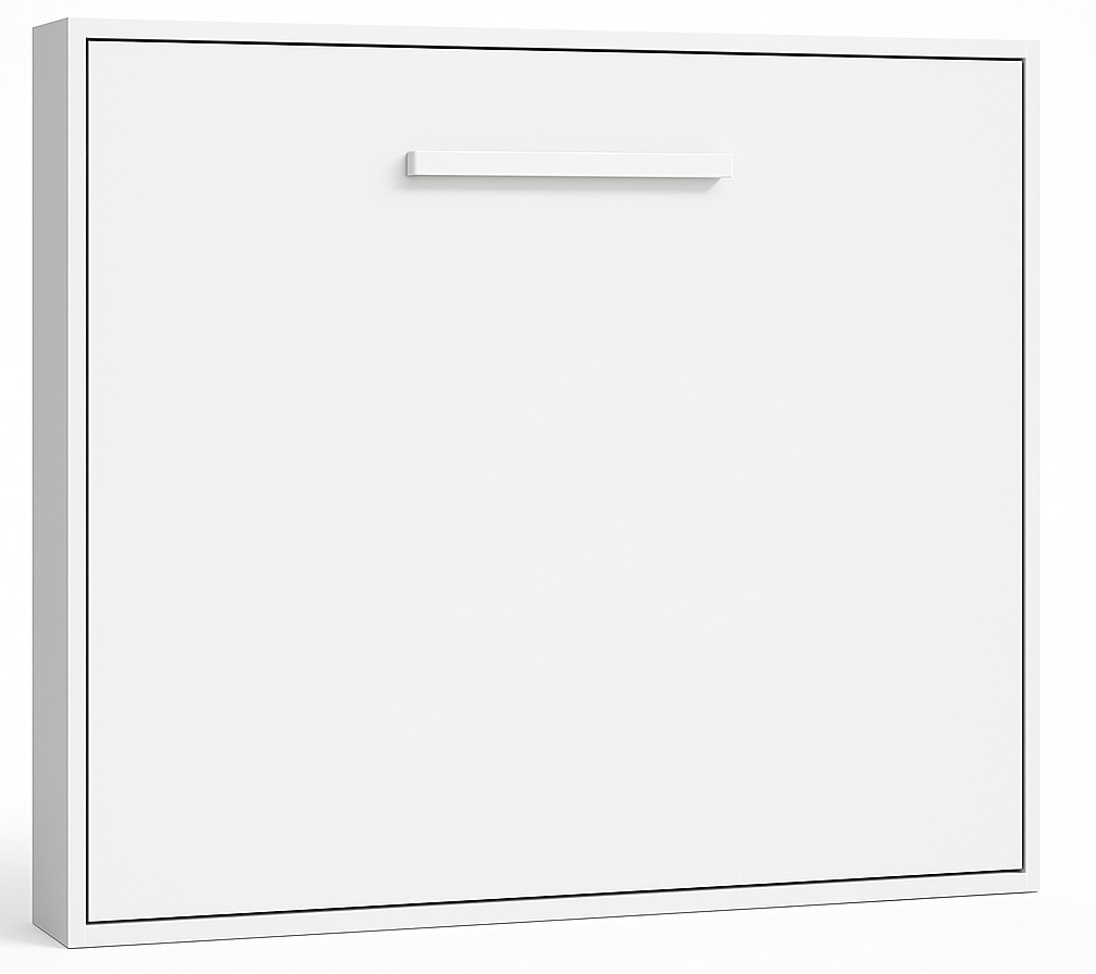 Lit escamotable horizontal OPTIMA-Avec matelas-140x180-Cadre Blanc-Façade Blanche