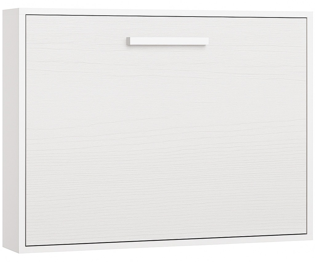 Lit escamotable horizontal OPTIMA-Avec matelas-140x190-Cadre Blanc-Façade Vison