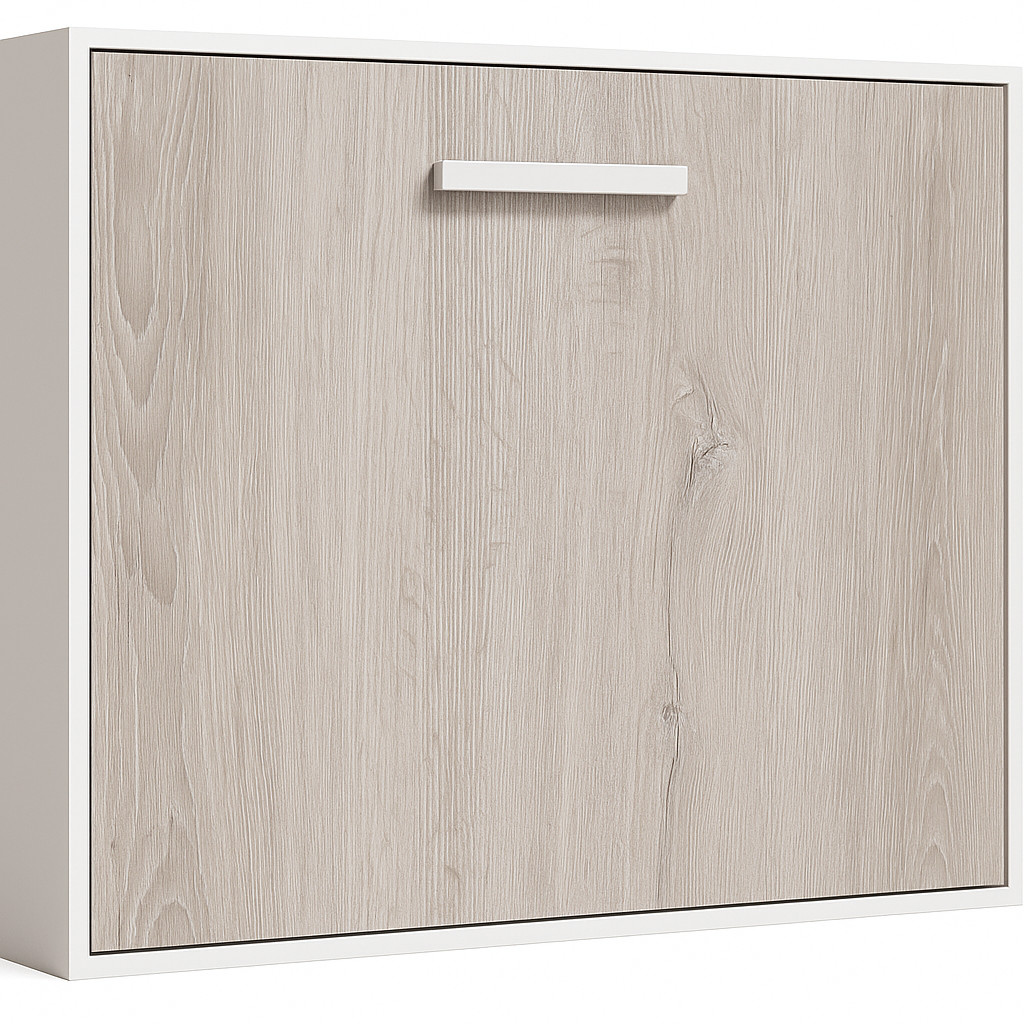 Lit escamotable horizontal OPTIMA-Avec matelas-90x200-Cadre Blanc-Façade Chêne gris