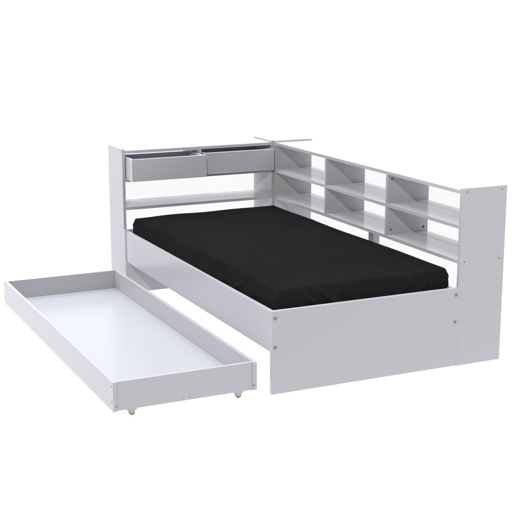 Lit - étagères - tiroir - sommier inclus Roller - Blanc