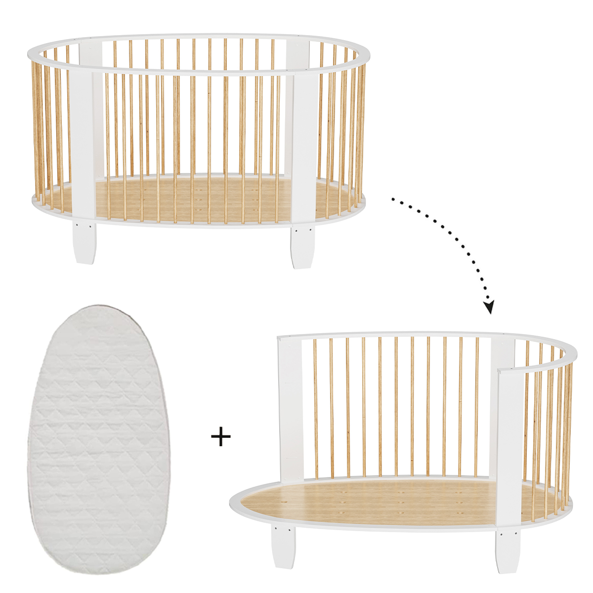 Lit évolutif 70x140 matelas inclus Songes et Rigolades Oeuf - Blanc et bois