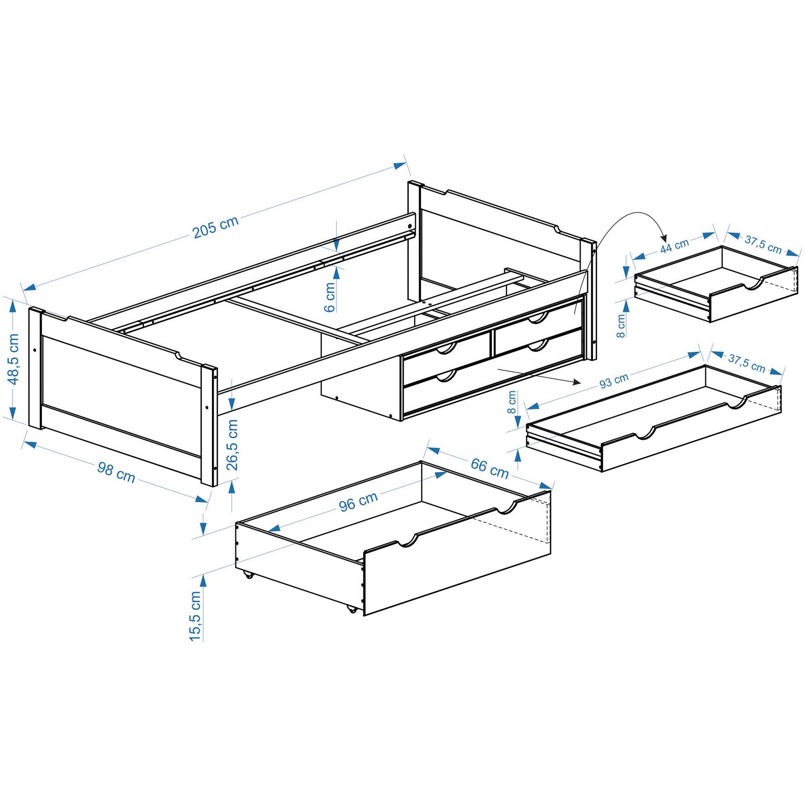| Libellé | Lit fonctionnel ANDREA avec rangements lit enfant, 90 x 200 cm pin massif vernis naturel et lasuré blanc |