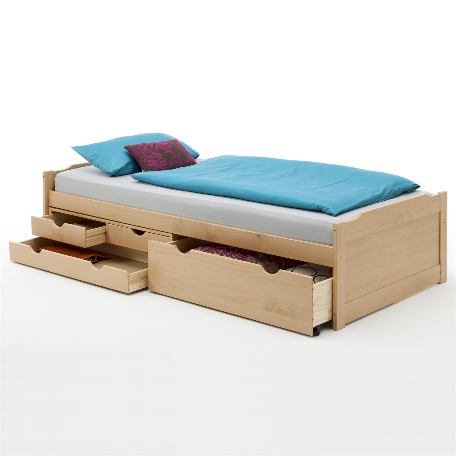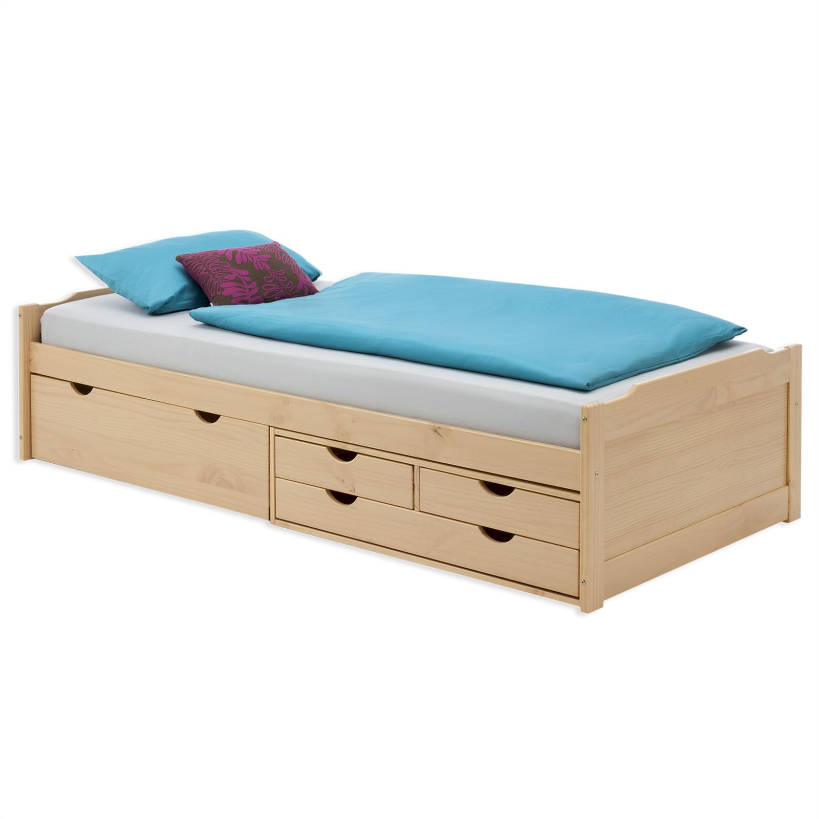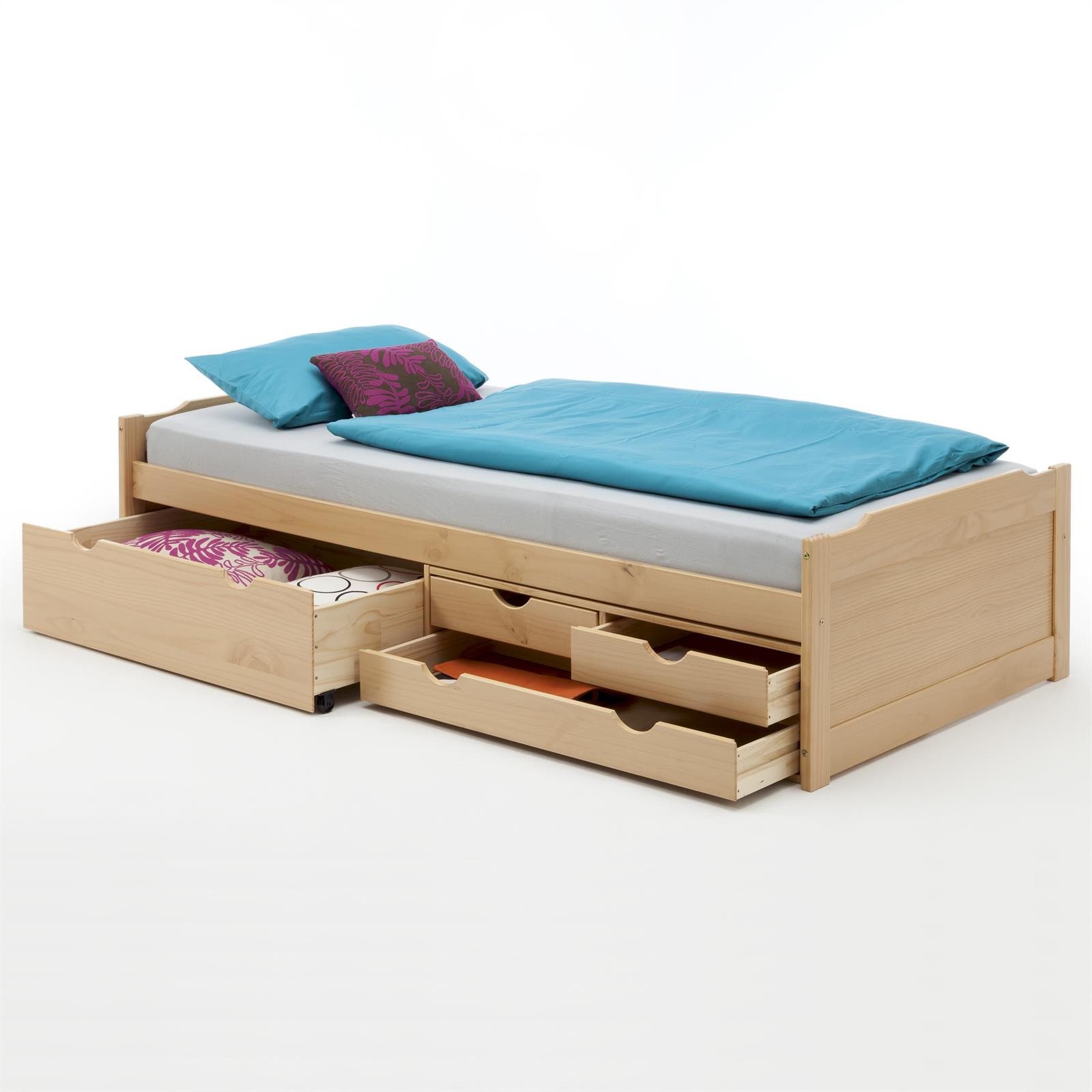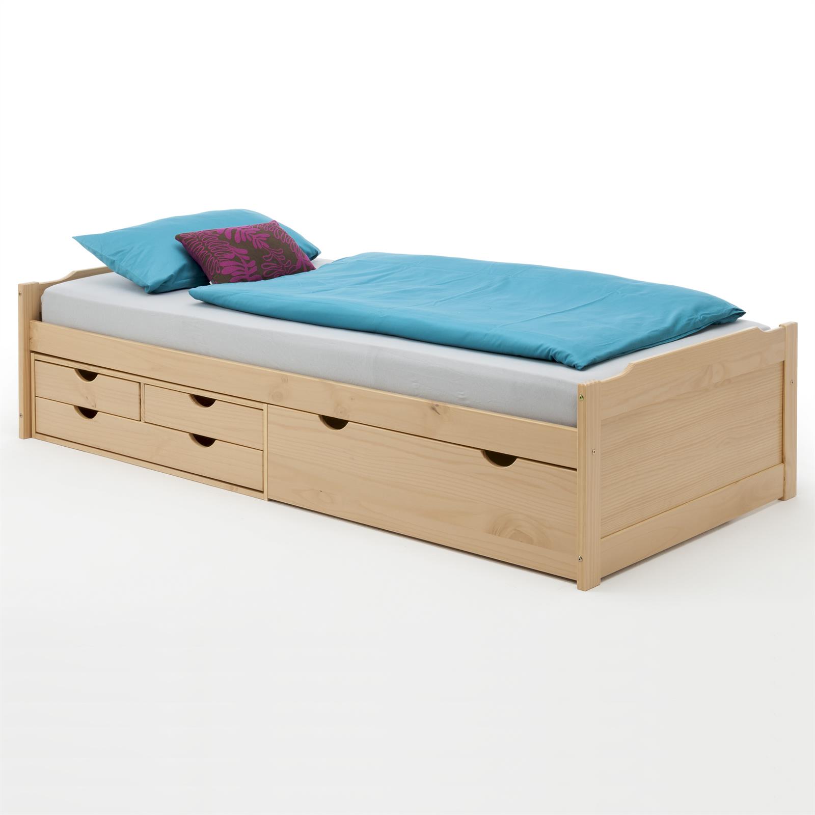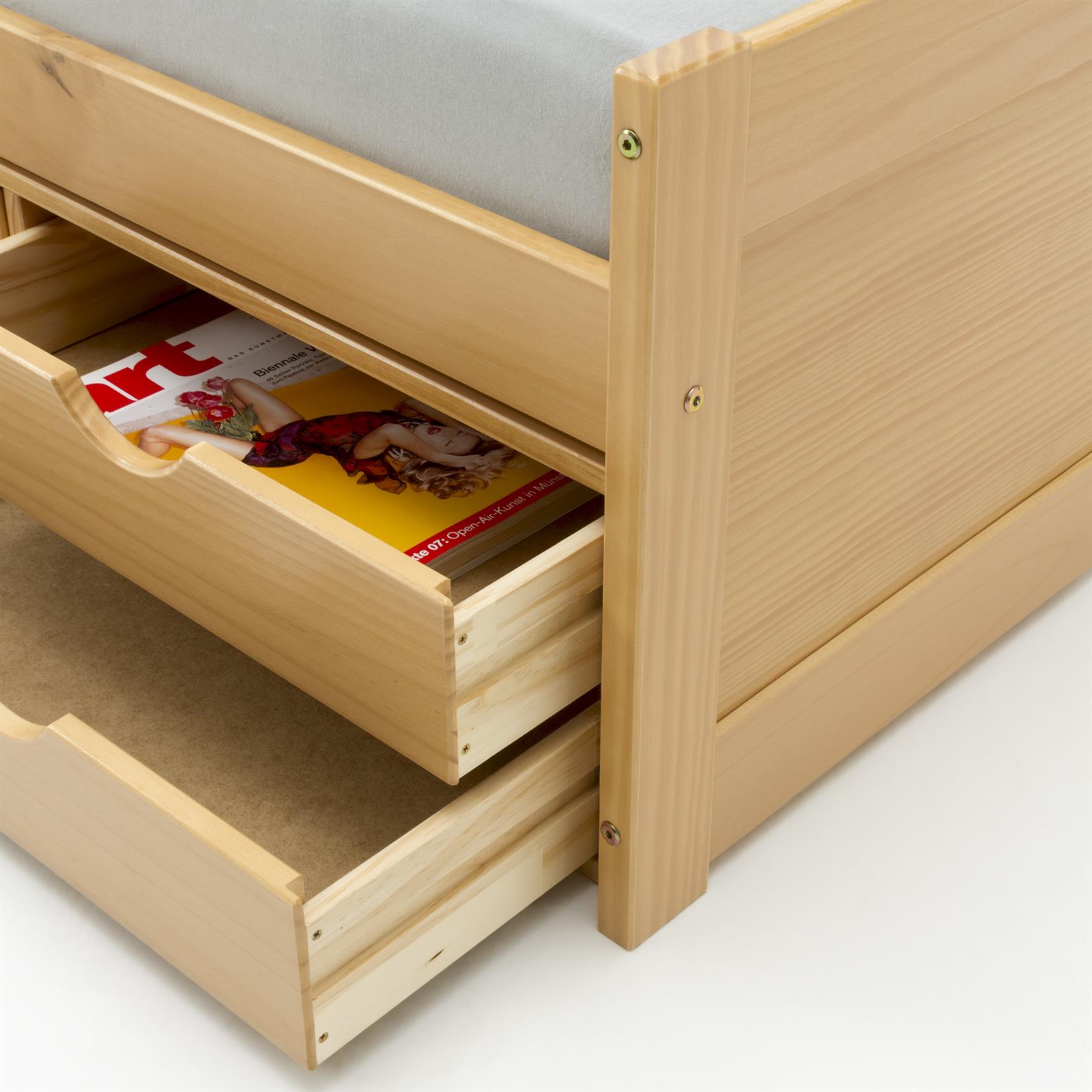 Lit fonctionnel rangements 90x200cm couleur hêtre