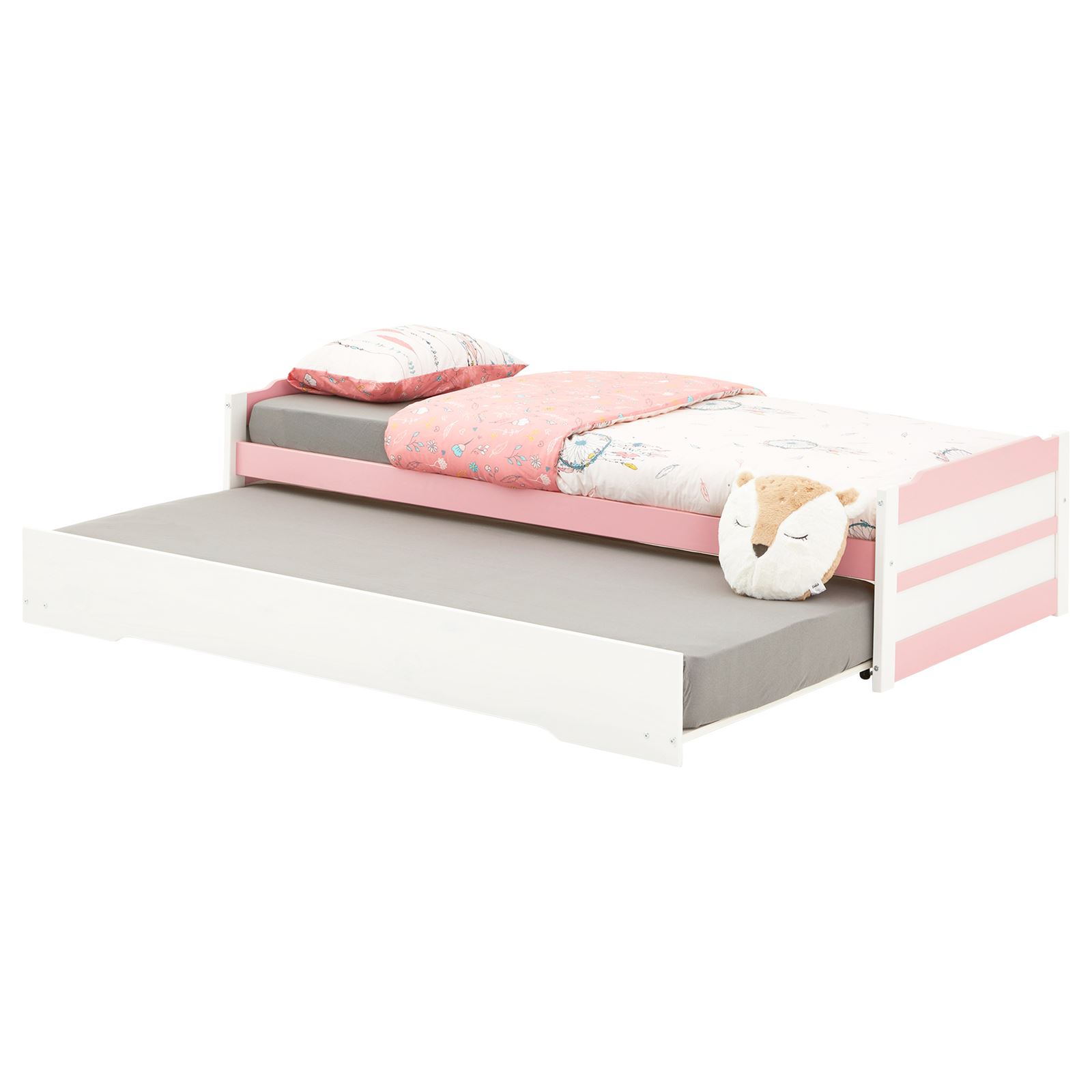 Lit gigogne LORENA 1 personne tiroir lit fonctionnel 90 x 190 cm pin massif lasuré blanc et rose