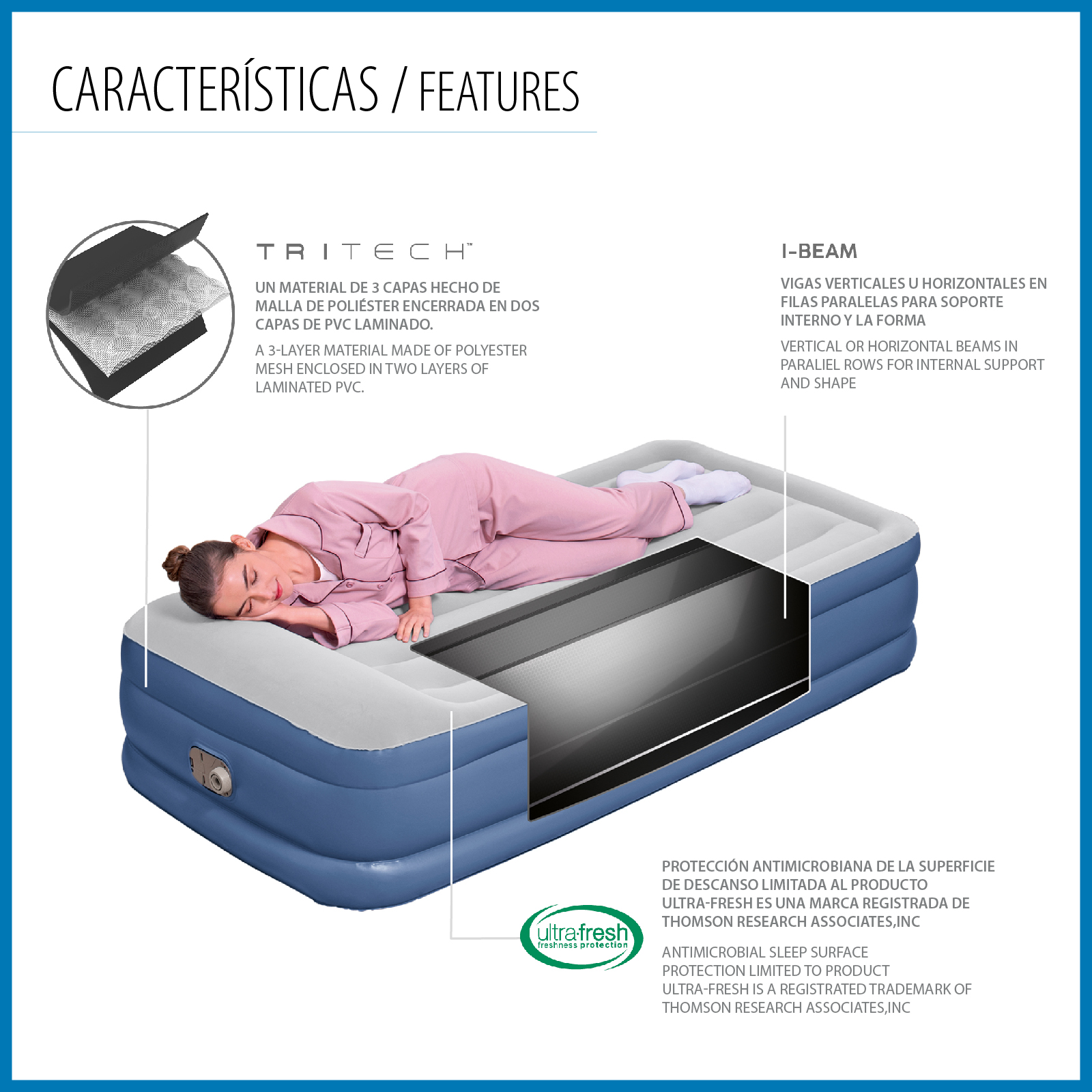 - Traitement Ultra-Fresh pour protéger le matelas des bactéries et des micro-organismes.