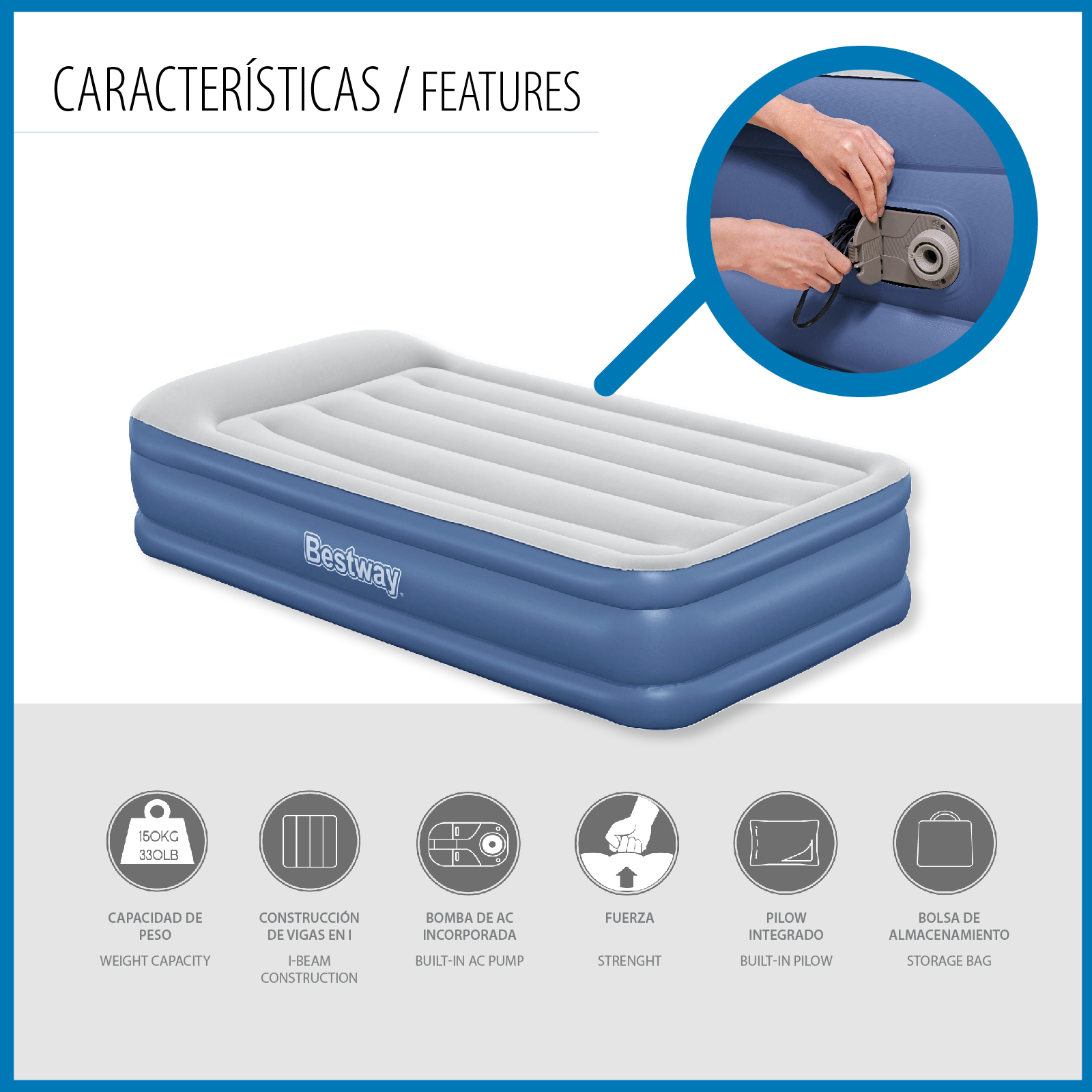 Libellé Lit Gonflable Bestway Tritech Individuel 191x97x46 cm Supporte jusqu'à 150 Kg Gonflé en 3 Minutes avec Renfort Périmétral