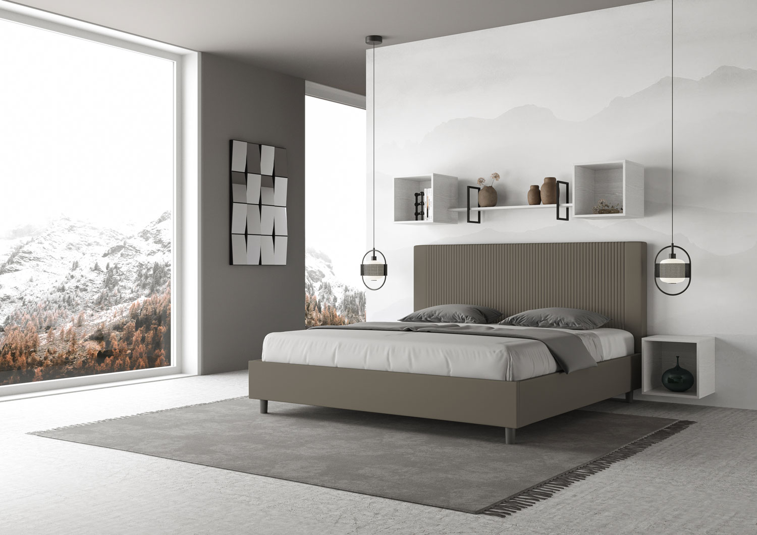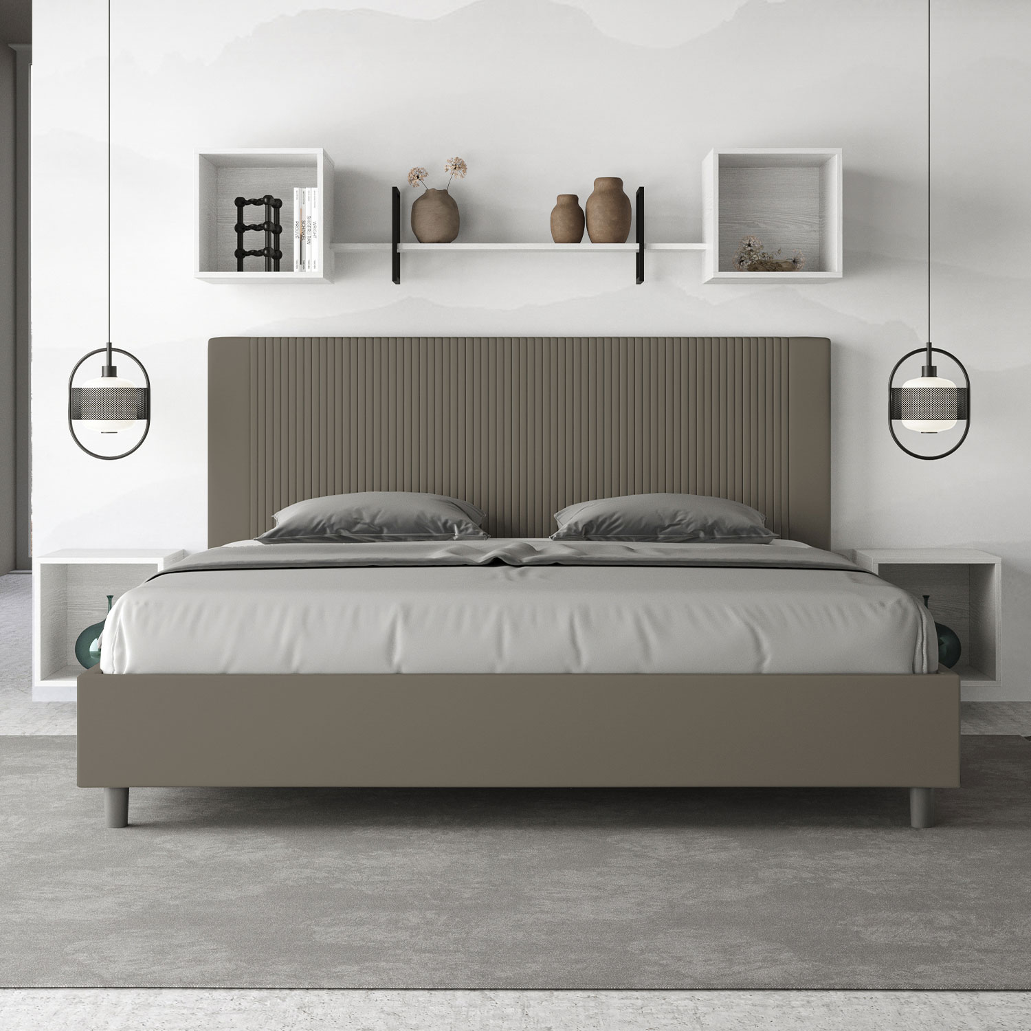 Lit 180x190Goya avec tête de lit et cadre de lit rembourrés, revêtement en PU, particulièrement polyvalent et facile à assortir à tout style de décoration. Le lit 180x190Goya est caractérisé par un style moderne et élégant, mis en valeur par la tête de lit matelassée revêtue en PU. La présence du PU, en plus de donner à la pièce une atmosphère chaleureuse et accueillante, offre la commodité d'un nettoyage facile et rapide, grâce à l'utilisation d'un simple chiffon en microfibre. Lit fourni avec un sommier à lattes, prévu pour un matelas de 180x190 cm - Matelas non inclus. Revêtement de lit non déhoussable. Produit Ityhome Made in Italy Dimensions: L.195 P.210 H.122 cm Hauteur pieds: 12 cm Hauteur du cadre de lit: 27 cm Hauteur du sommier depuis le sol: 38 cm