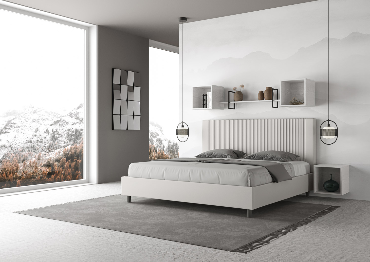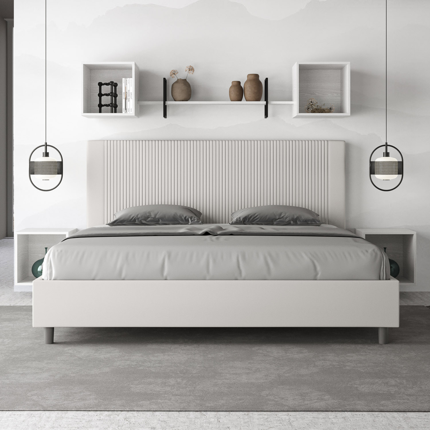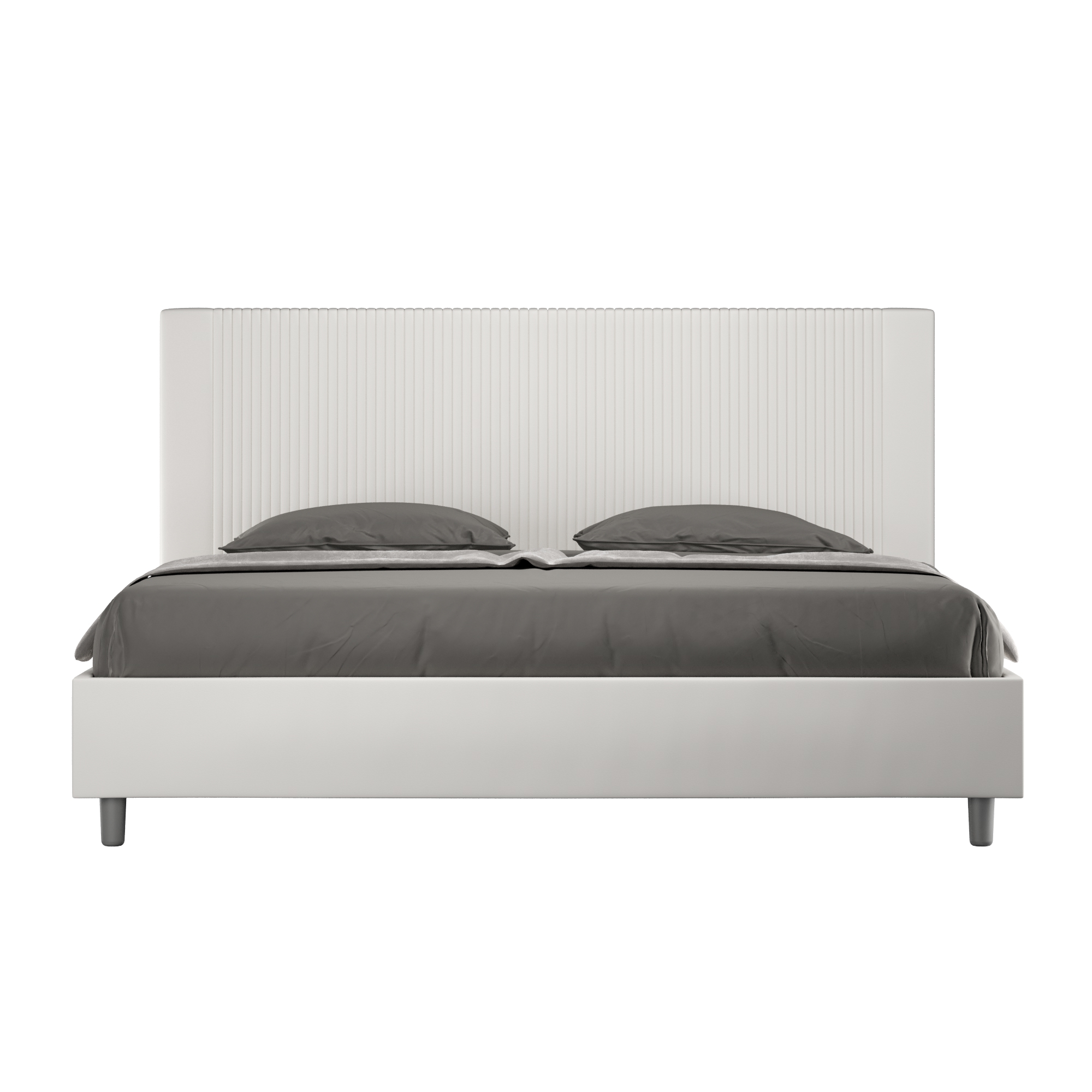 Lit 180x190Goya avec tête de lit et cadre de lit rembourrés, revêtement en PU, particulièrement polyvalent et facile à assortir à tout style de décoration. Le lit 180x190Goya est caractérisé par un style moderne et élégant, mis en valeur par la tête de lit matelassée revêtue en PU. La présence du PU, en plus de donner à la pièce une atmosphère chaleureuse et accueillante, offre la commodité d'un nettoyage facile et rapide, grâce à l'utilisation d'un simple chiffon en microfibre. Lit fourni avec un sommier à lattes, prévu pour un matelas de 180x190 cm - Matelas non inclus. Revêtement de lit non déhoussable. Produit Ityhome Made in Italy Dimensions: L.195 P.210 H.122 cm Hauteur pieds: 12 cm Hauteur du cadre de lit: 27 cm Hauteur du sommier depuis le sol: 38 cm