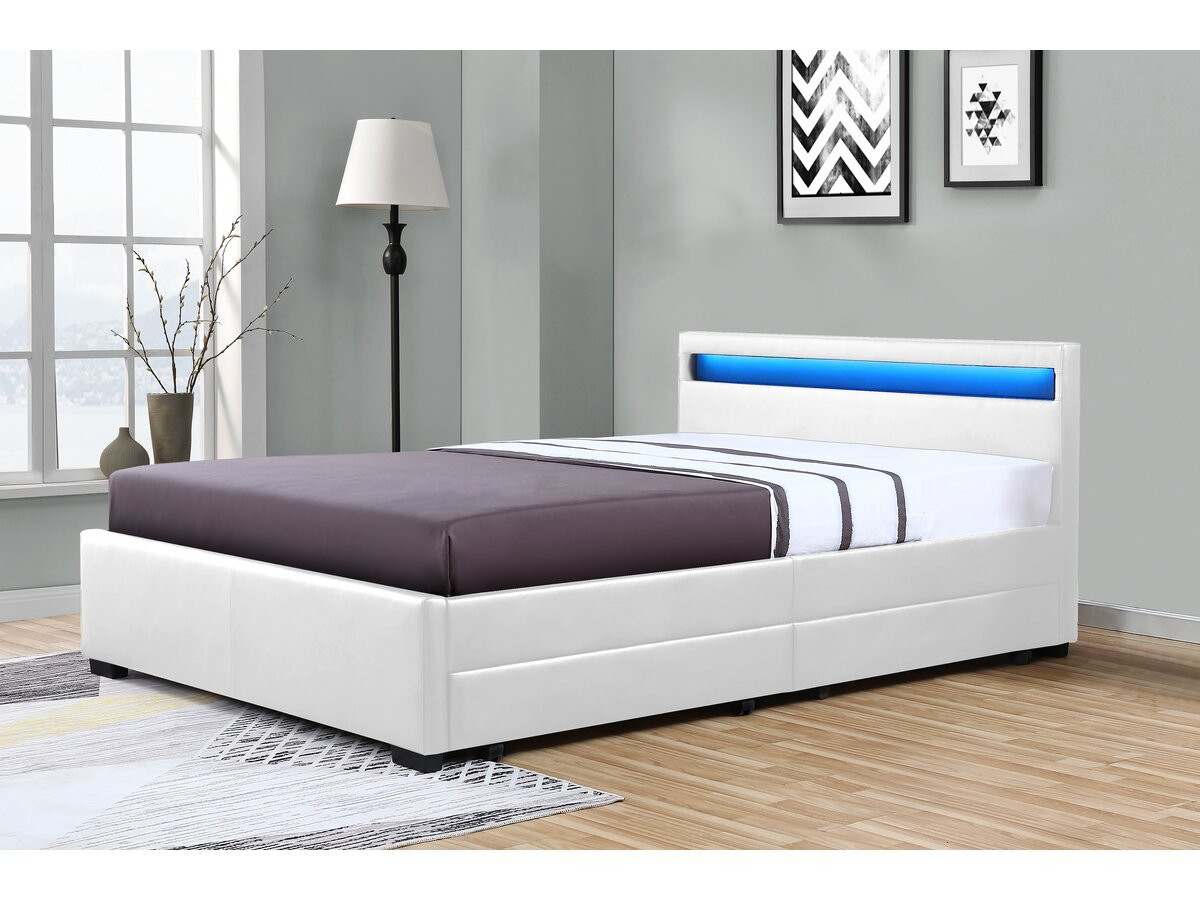 | Libellé | Lit LED avec 4 tiroirs "Nico"- 140 × 190 cm - Blanc |
