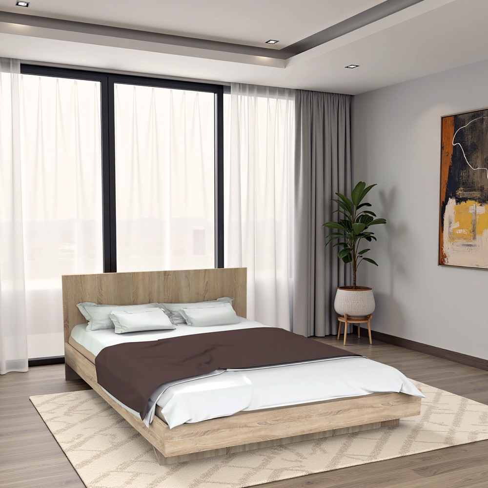 Lit LOFT 140x190 cmAvec son design pur et intemporel ainsi que ses pieds dissimulés sous le sommier lui donnant l'impression de flotter, le lit LOFT saura vous séduire. Que vous cherchiez un style moderne, bohème ou encore scandinave, il saura s'intégrer facilement à votre décoration.Caractéristiques : Structure en panneau de particules.12 lattes multiplis, section 70x8mm.Finition : chêne blanchi.Livré démonté avec un sommier, sans matelas. A monter soi-mêmeDimensions:192x143x75 cm