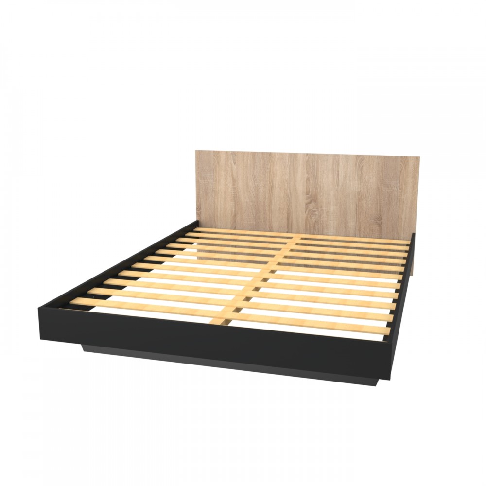 Lit LOFT 140x190 + 1 sommier + tête de lit / Décor Noir & chêne blanchi
