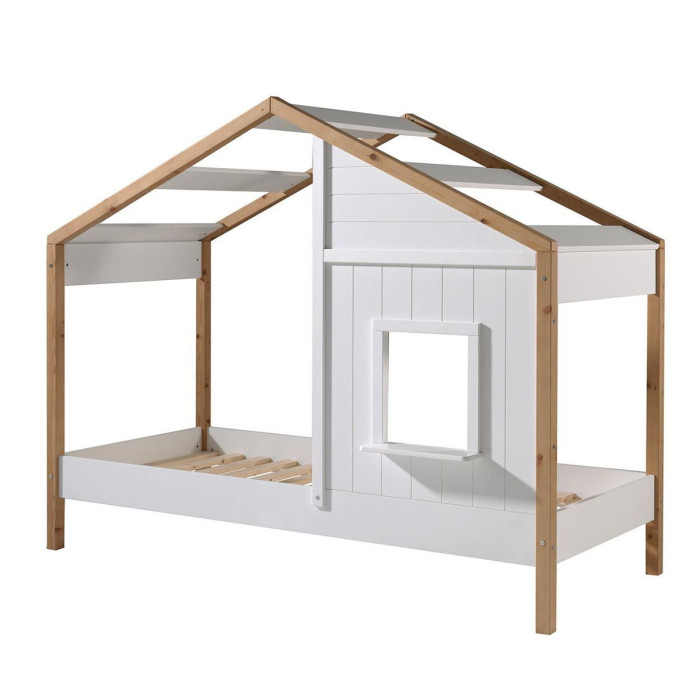 | Libellé | Lit maisonnette gigogne 90x200 1 fenêtre bois clair et blanc Babs |