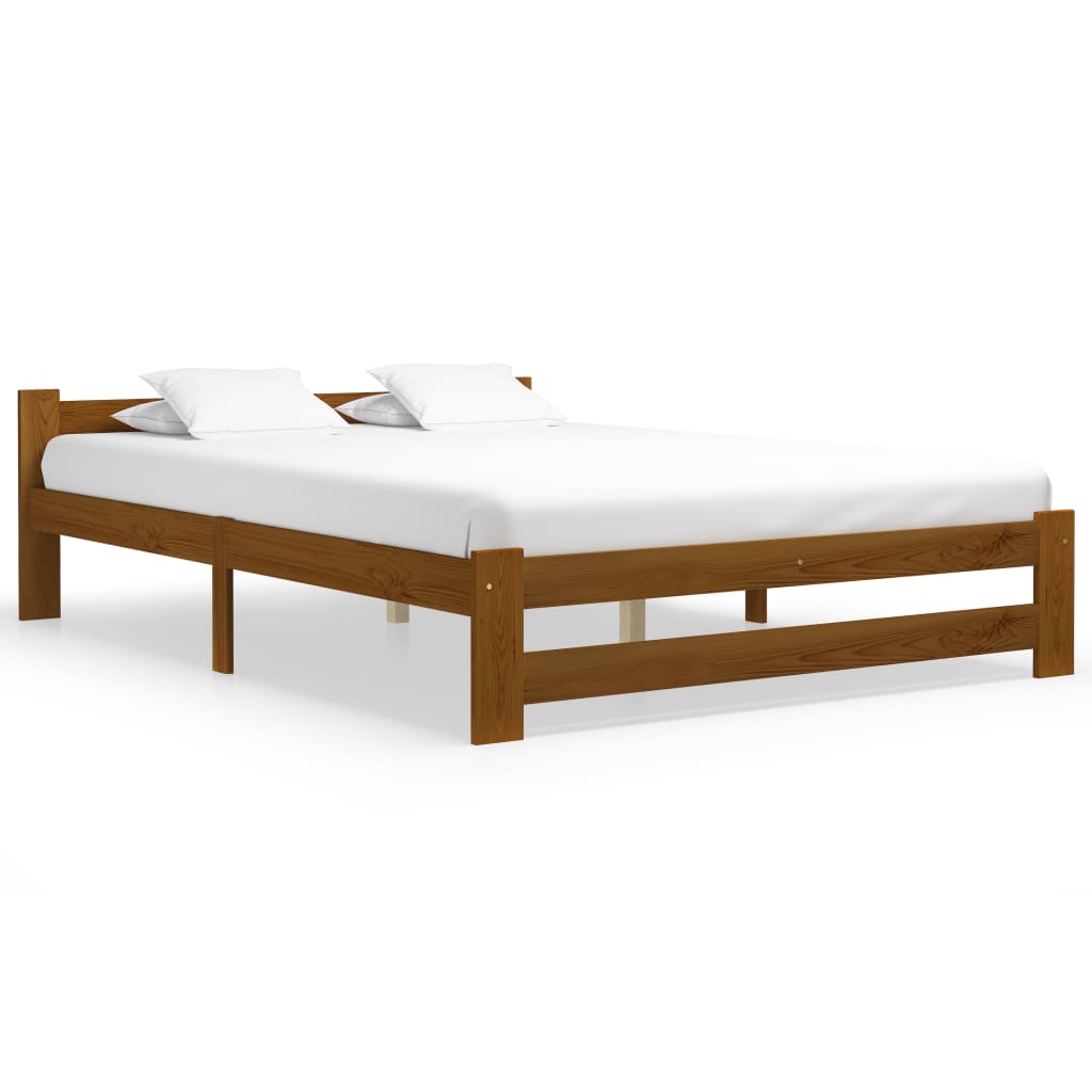 Apportez un aspect élégant et classique à votre chambre à coucher avec ce cadre de lit en bois de pin massif. Fabriqué en bois de pin massif, ce cadre de lit est extrêmement solide et durable. Les lattes en contreplaqué robustes offrent le soutien et le confort nécessaires. Il est adapté pour un matelas de 120 x 200 cm. Veuillez noter que la livraison inclut un cadre de lit seulement ; un matelas n'est pas inclus. Vous pouvez chercher le matelas correspondant dans notre boutique. Couleur : marron miel Matériau : bois de pin massif, contreplaqué Dimensions : 204 x 127 x 55 cm (L x l x H) Dimensions du matelas correspondant : 120 x 200 cm (l x L) (matelas non inclus) L'espace sous le lit : 22 cm L'assemblage est requis