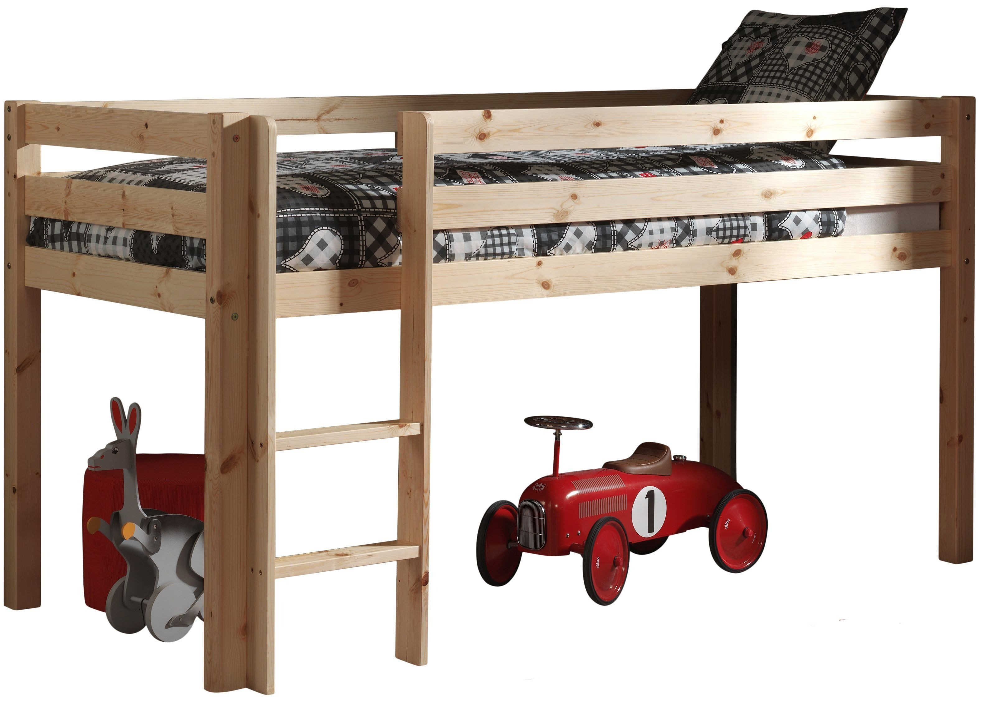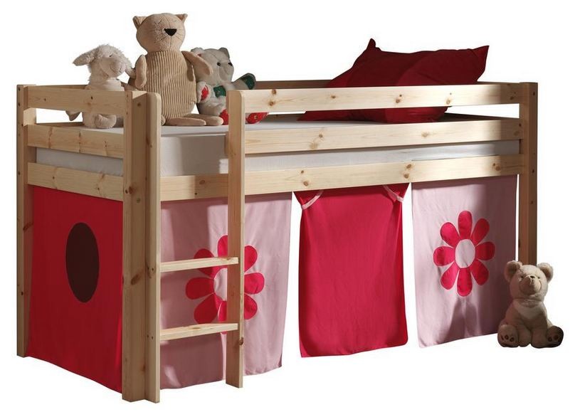 Lit mezzanine 90x200 avec tente fleur pin massif clair Pino