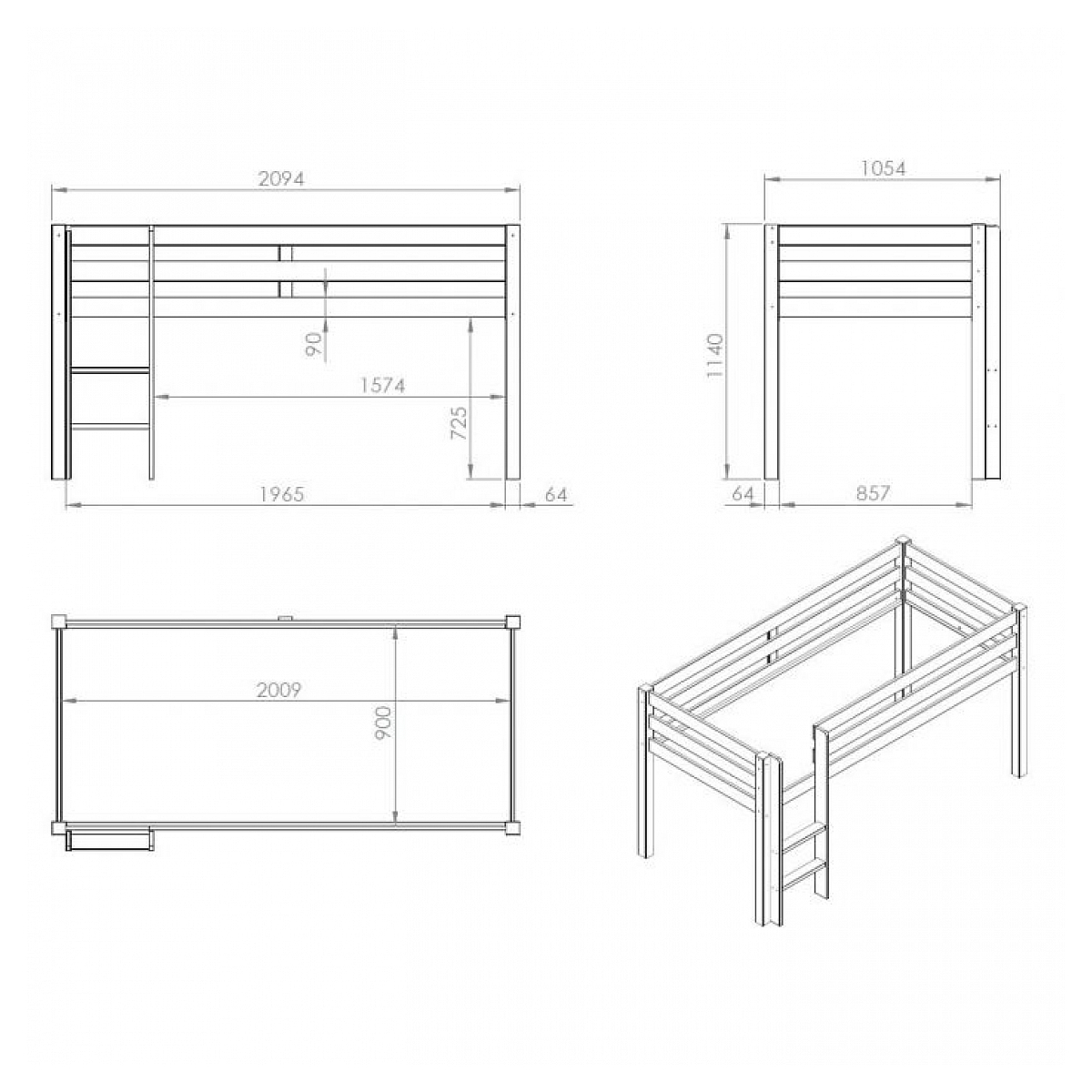 | Libellé | Lit mezzanine 90x200 avec tente fleur pin massif clair Pino |