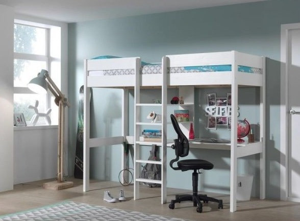 Lit mezzanine 90x200 pin massif laqué blanc Pino