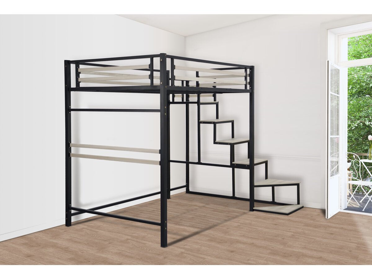 | Libellé | Lit mezzanine en métal avec escalier "LENA" - 140 x 200 cm - noir |