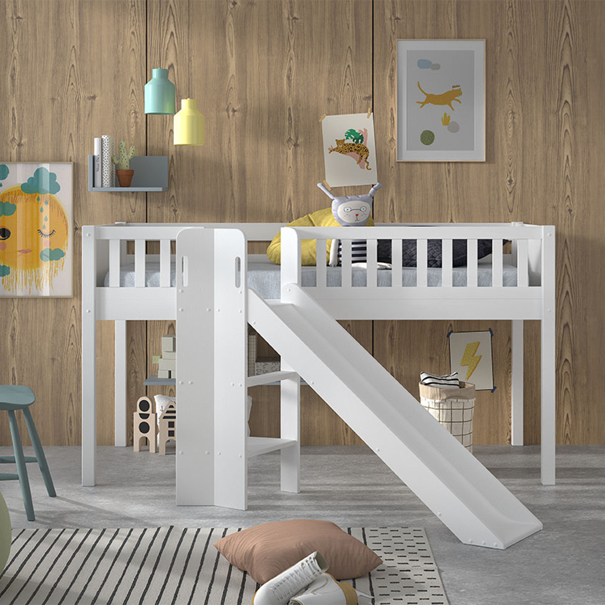Lit mi-hauteur 90x200 toboggan sommier inclus Vipack Scott - Blanc