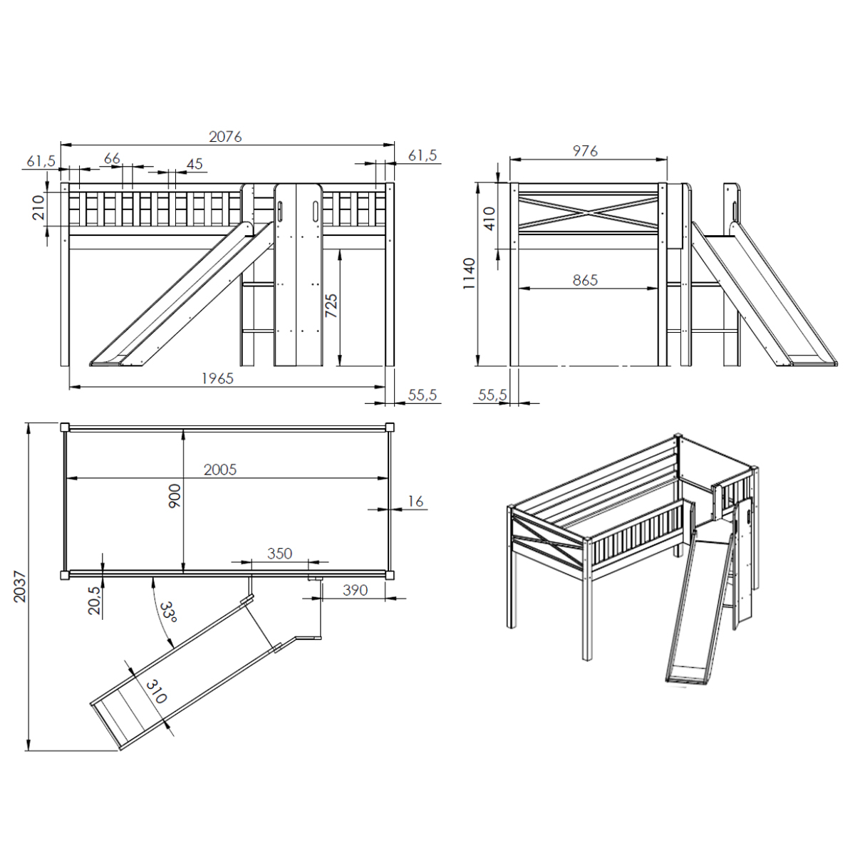 Votre enfant aura hâte de se coucher quand vous lui aurez offert le lit mi-hauteur toboggan de la collection Scott.
