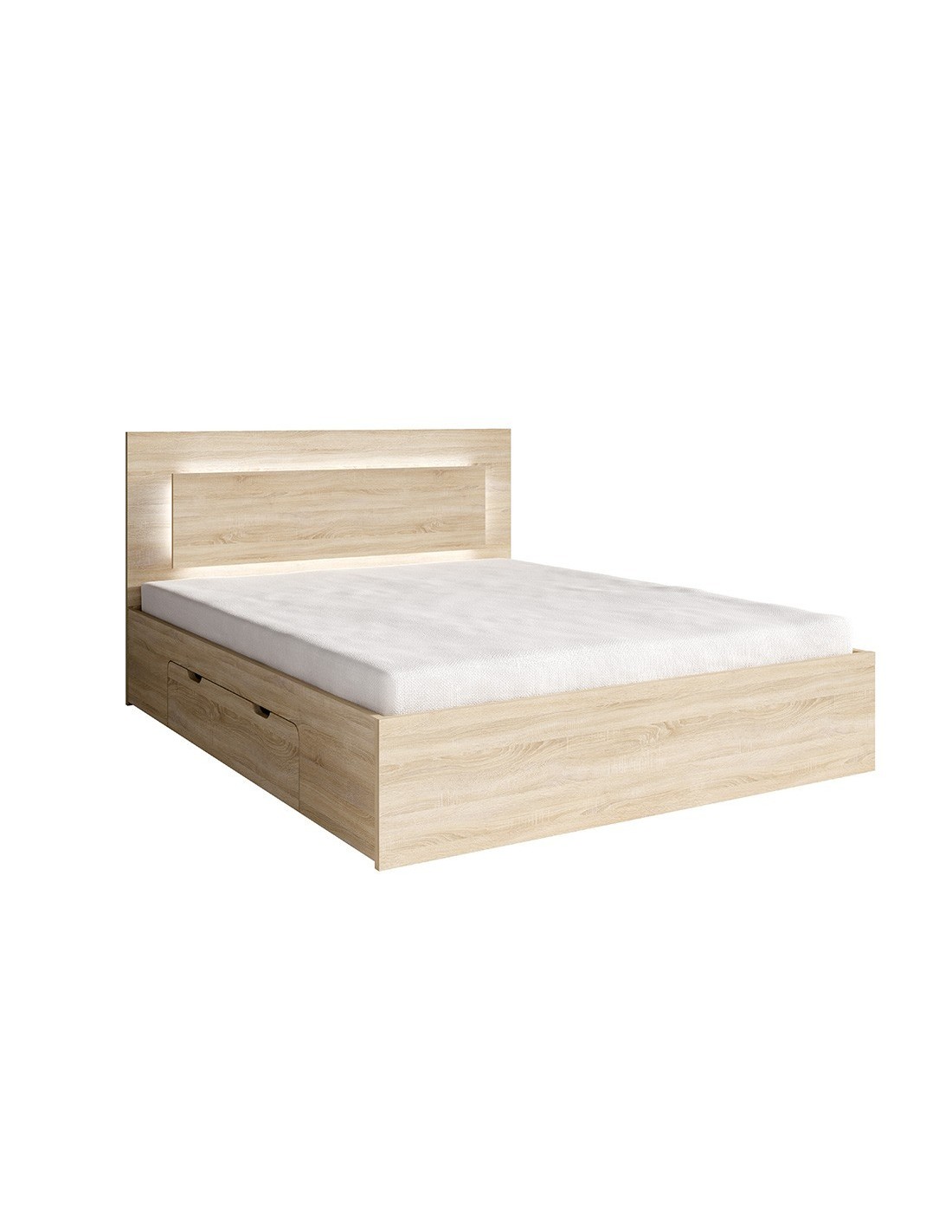 Lit NOFI 180 x 200 cm avec sommier et 2 tiroirs de rangement - coloris chêne sonoma