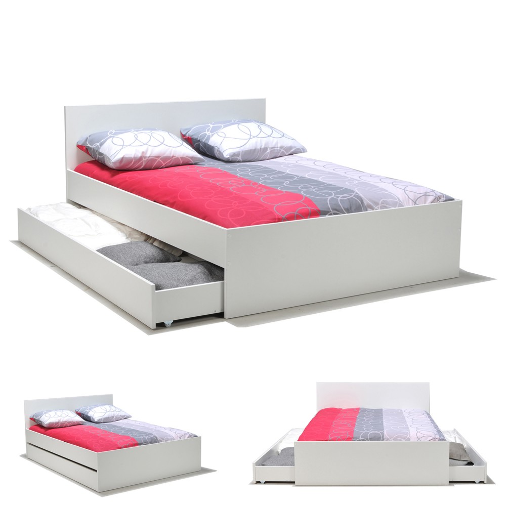 Lit OSLO 140x190 + 2 tiroirs / Blanc