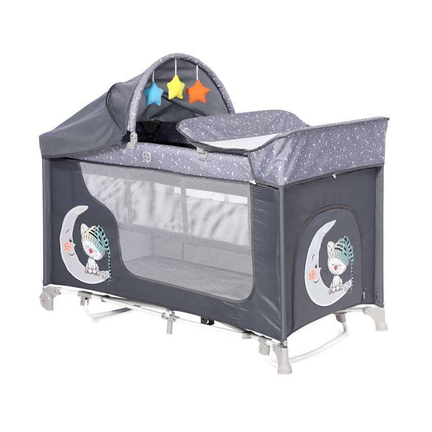 Le modèle MOONLIGHT 2 (balançoire) est le plus récent modèle de lit bébé Lorelli. Il va impressionner les parents avec son design discret, une fonctionnalité exceptionnelle, des couleurs fraîches et avant tout la longue période d’utilisation – de la naissance à l’âge de 3-4 ans de l’enfant. Caractéristiques :- 2 niveaux : pour jouer et pour dormir ; - Auvent avec jouets suspendus ; - matelas à langer; - ouverture latérale avec fermeture éclair ; - peut être transporté facilement ; - sac ; - se plie facilement ; - système de pliage double sécurité ; - lit balançoire