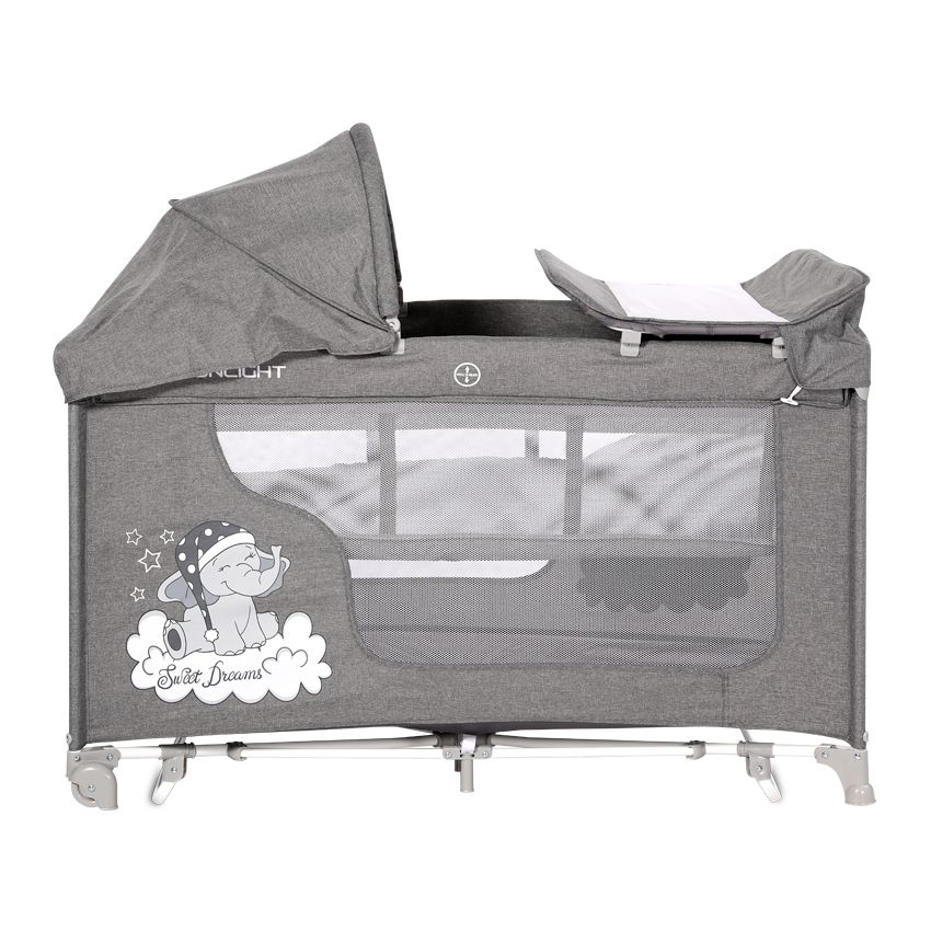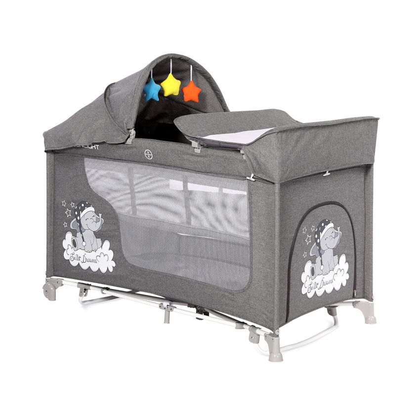 Le modèle MOONLIGHT 2 (balançoire) est le plus récent modèle de lit bébé Lorelli. Il va impressionner les parents avec son design discret, une fonctionnalité exceptionnelle, des couleurs fraîches et avant tout la longue période d’utilisation – de la naissance à l’âge de 3-4 ans de l’enfant. Caractéristiques :- 2 niveaux : pour jouer et pour dormir ; - Auvent avec jouets suspendus ; - matelas à langer; - ouverture latérale avec fermeture éclair ; - peut être transporté facilement ; - sac ; - se plie facilement ; - système de pliage double sécurité ; - lit balançoire