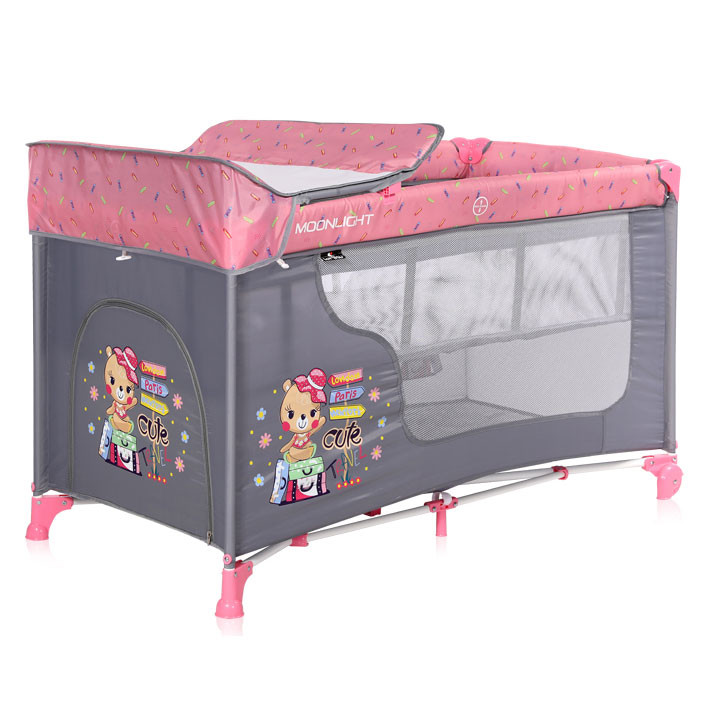 Libellé Lit parapluie bébé / Lit pliant berceau à 2 niveaux lit de voyage Lit d'appoint MOONLIGHT 2 lorelli rose