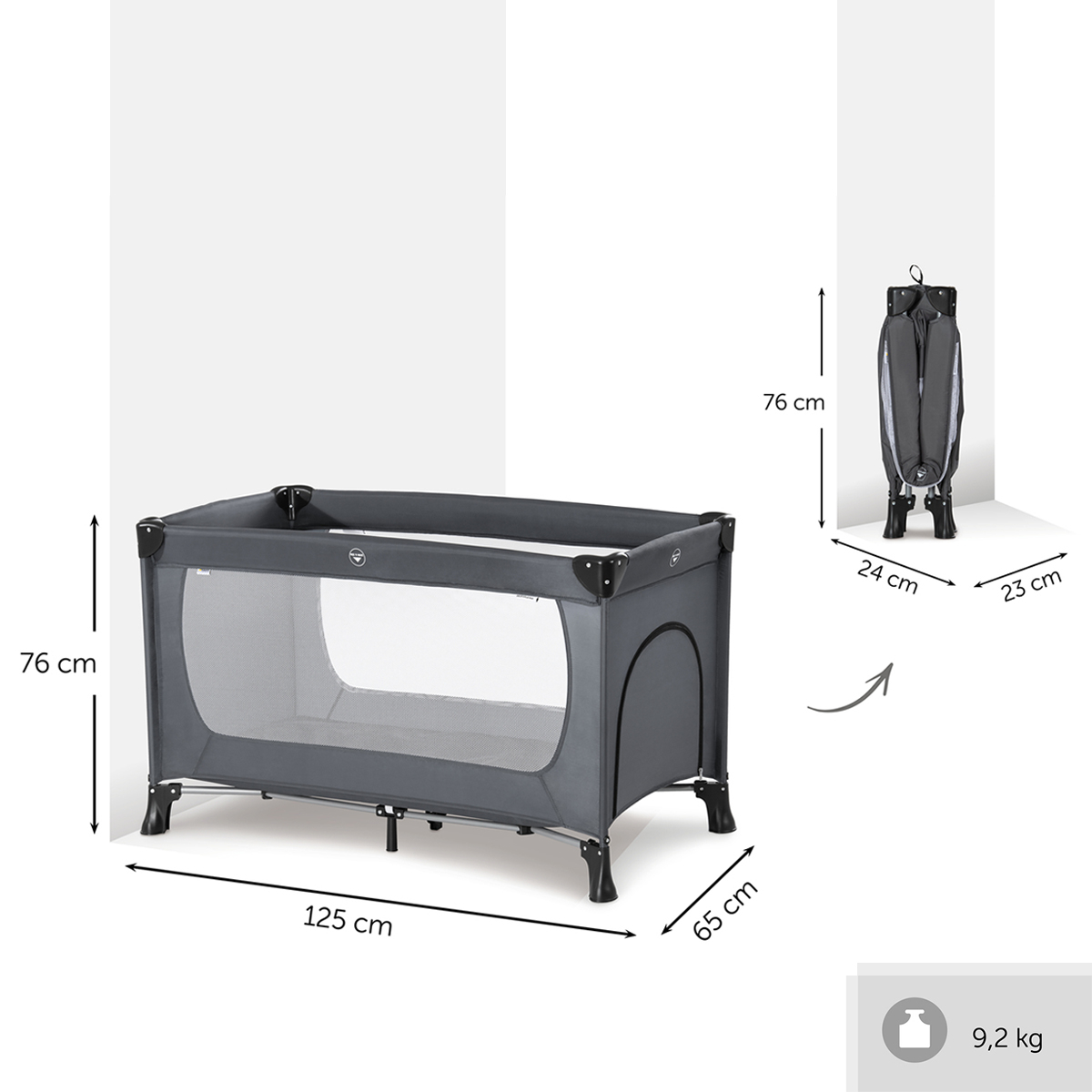 Contient le lit de voyage, un matelas pliable et un sac pour transporter le tout