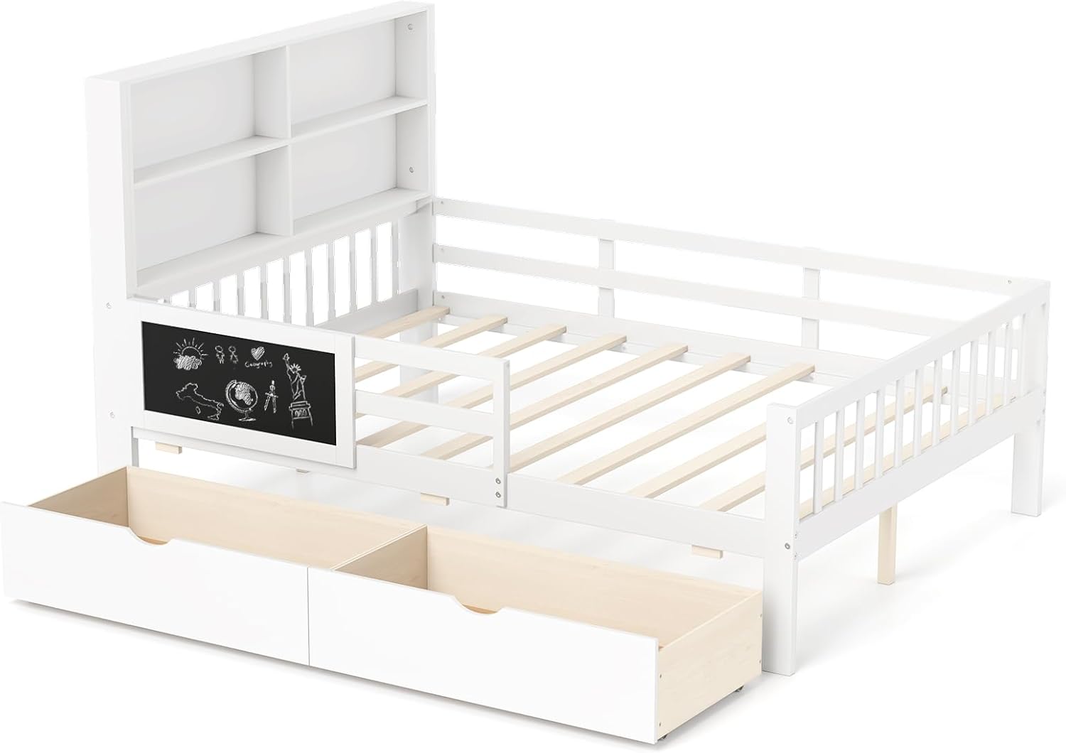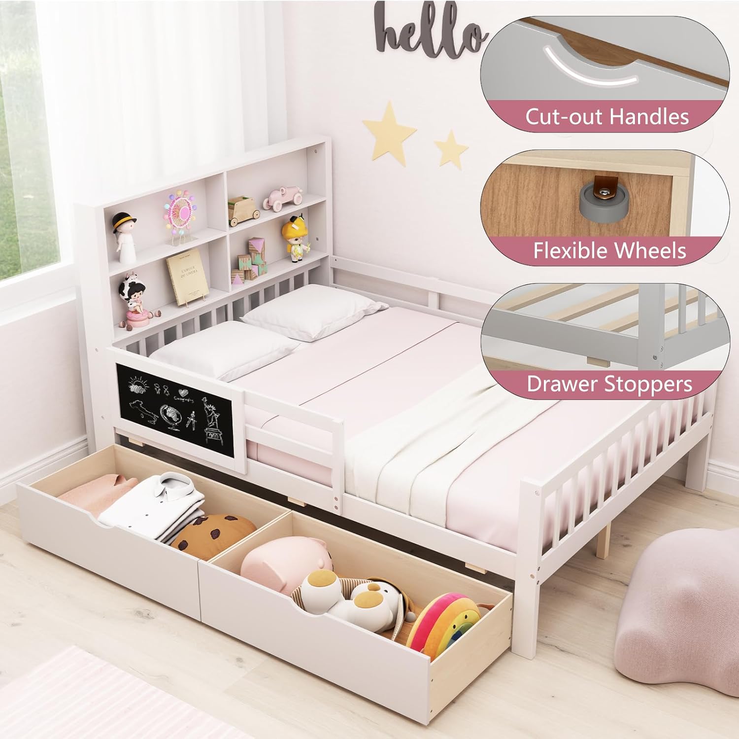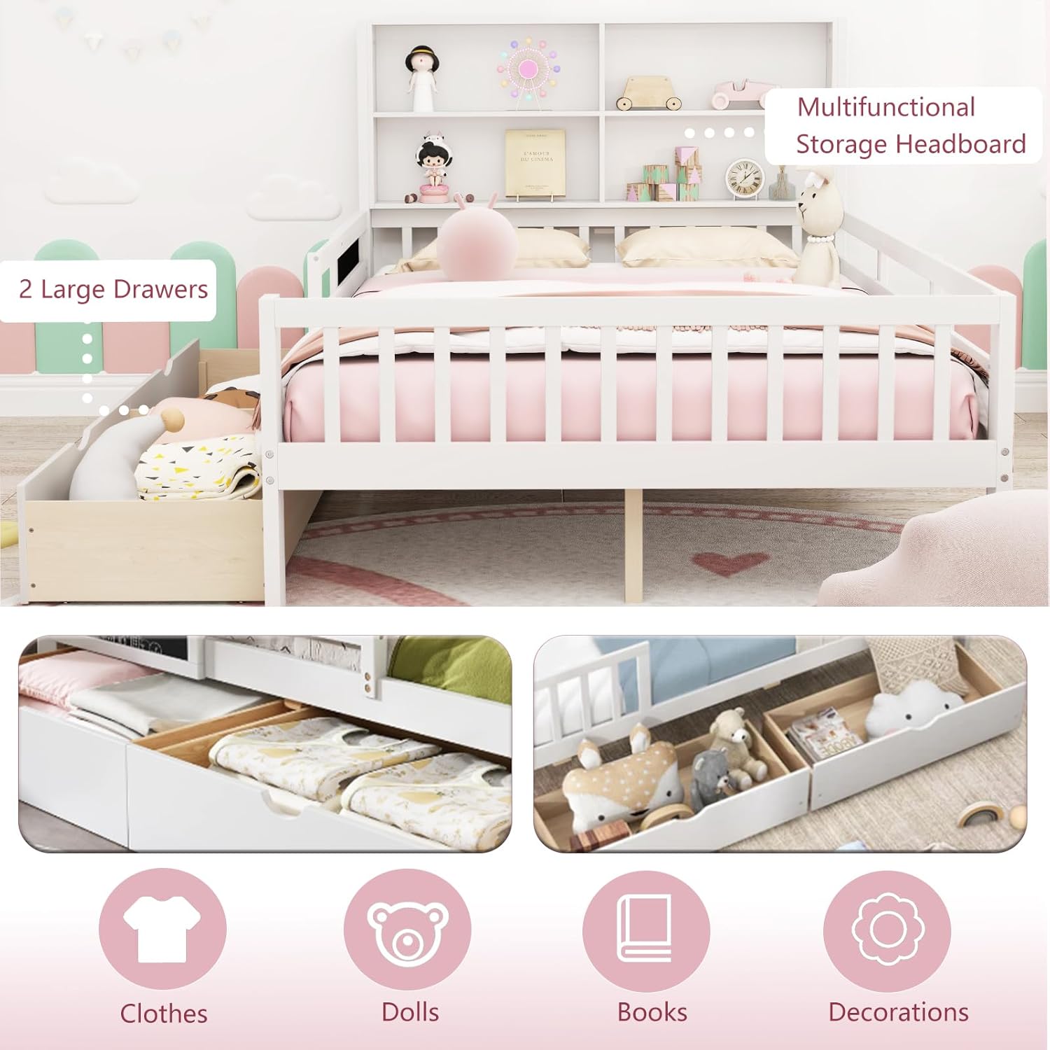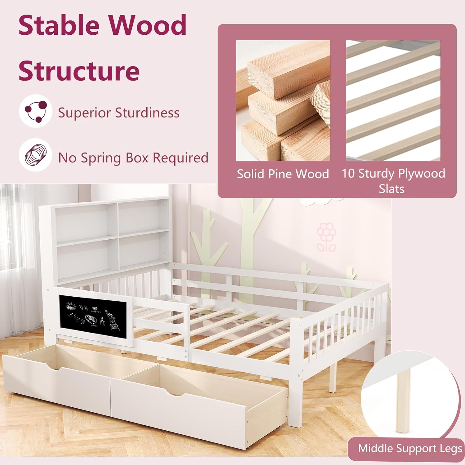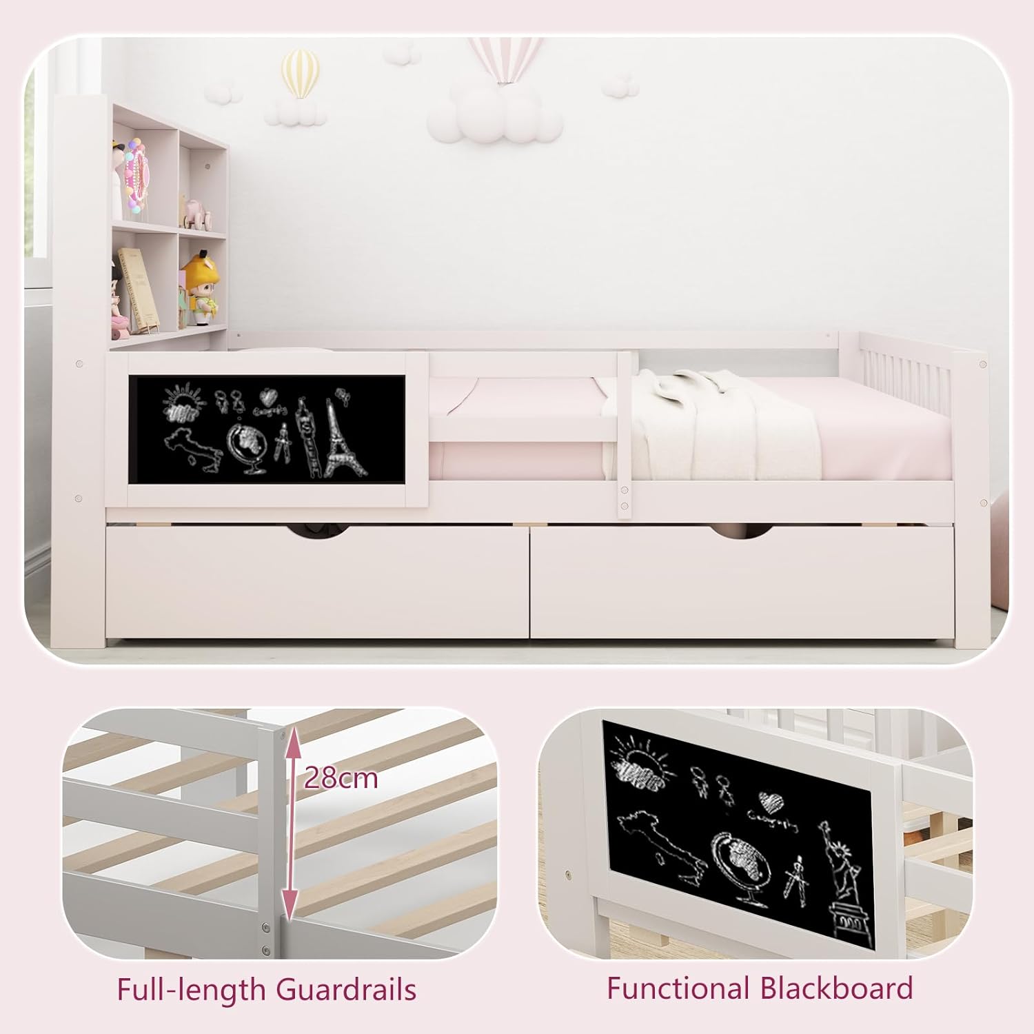 - Solution de rangement organisée : la tête de lit multifonctionnelle sert de bibliothèque pratique pour un accès facile aux livres, jouets et décoration. En outre, les 2 tiroirs sous le lit sont parfaits pour ranger les vêtements, les poupées et la literie et aident à garder la chambre bien rangée et bien rangée.