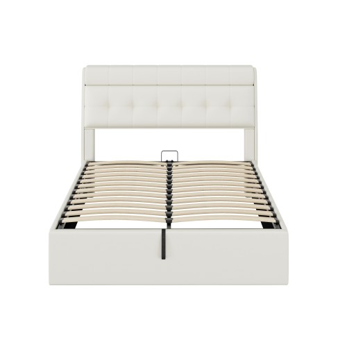 Lit rembourré, 140x190, lit hydraulique, rangement coffre de lit, avec tête de lit