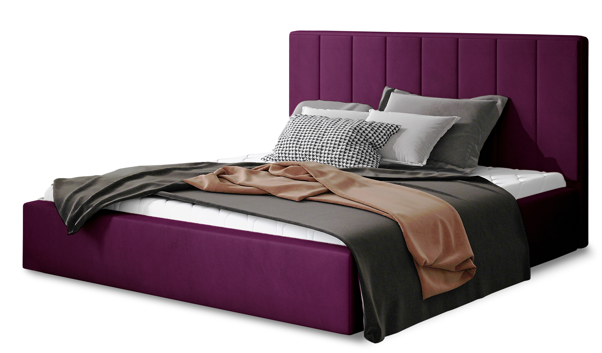 Lit rembourré de luxe velours Vareze-Couleur Magenta foncé-160x200-Version coffre de rangement