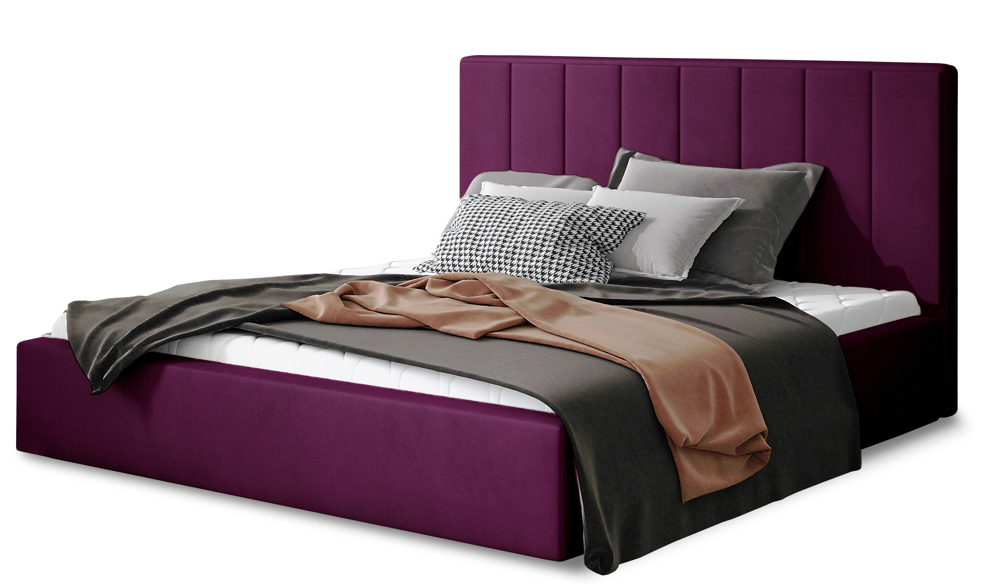Lit rembourré de luxe velours Vareze-Couleur Magenta foncé-200x200-Version avec sommier