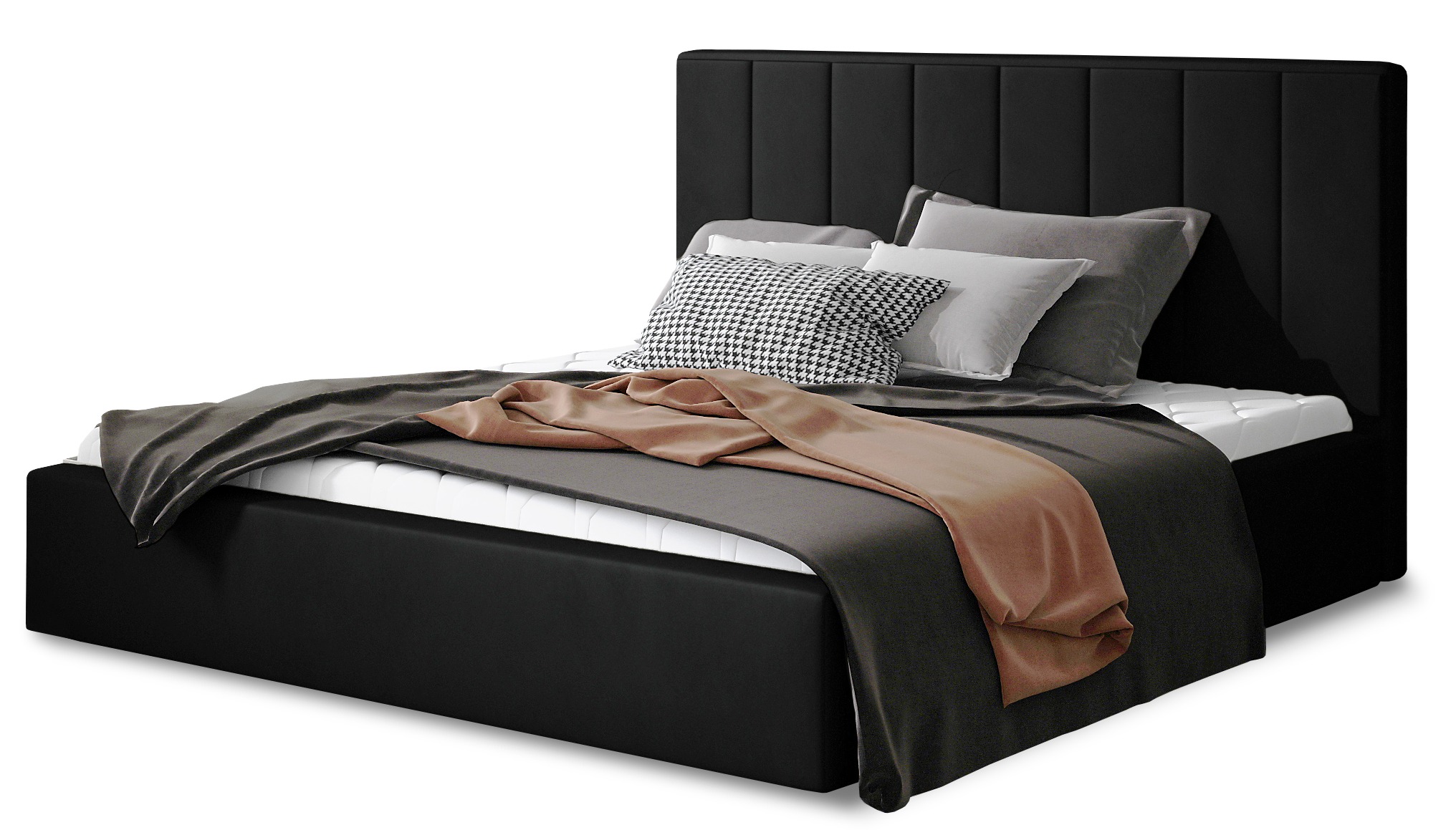 Lit rembourré de luxe velours Vareze-Couleur Noir-180x200-Version avec sommier