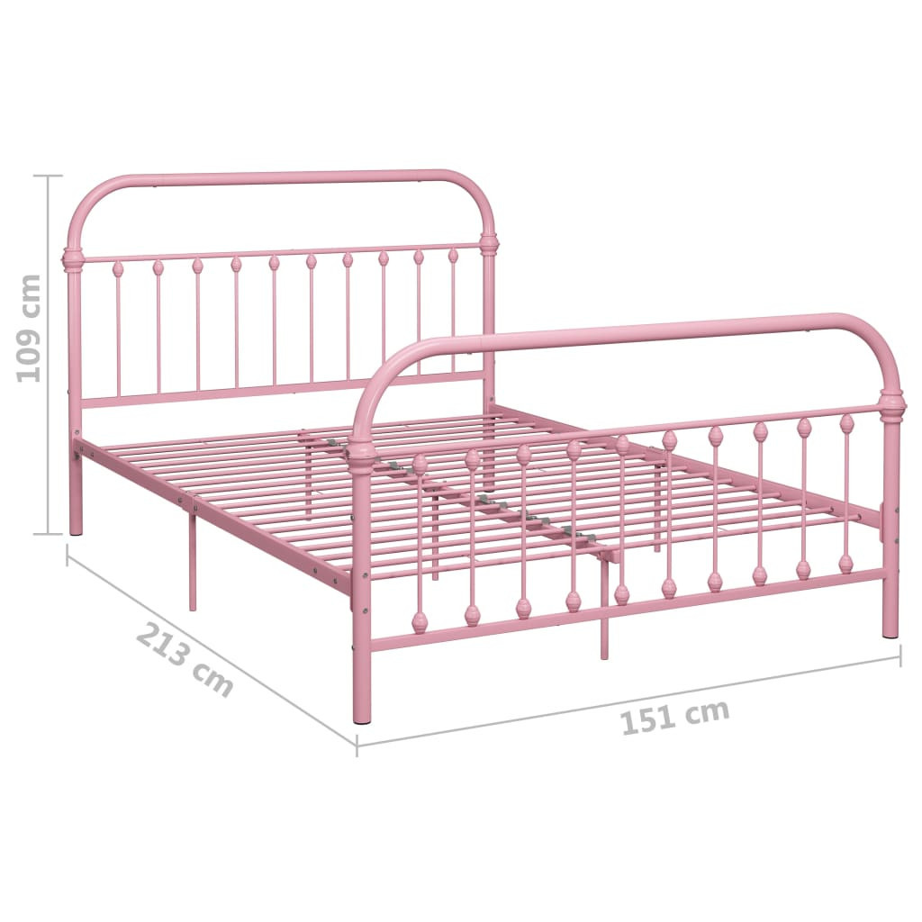 Donnez un aspect élégant et classique à votre chambre à coucher avec notre cadre de lit en métal ! Le cadre du lit possède une construction solide en métal. Les lattes en métal offrent tout le soutien nécessaire et sont très confortables. Avec toutes ces caractéristiques combinées, vous passerez sans le moindre doute une bonne nuit de sommeil ! Le cadre du lit doit être assemblé. Veuillez noter que la livraison inclut un cadre de lit seulement ; un matelas n'est pas inclus. Vous pouvez chercher le matelas correspondant dans notre boutique. Couleur : rose Matériau : métal Dimensions totales : 213 x 151 x 109 cm (L x l x H) Dimensions du matelas correspondant : 140 x 200 cm (l x L) (matelas non inclus) Hauteur du lit à partir du sol : 32 cm L'assemblage est requis
