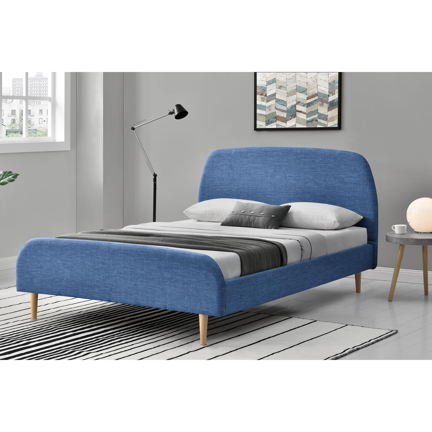 | Libellé | Lit Sandvik Tissu - Cadre de lit scandinave Bleu avec pieds en bois - |