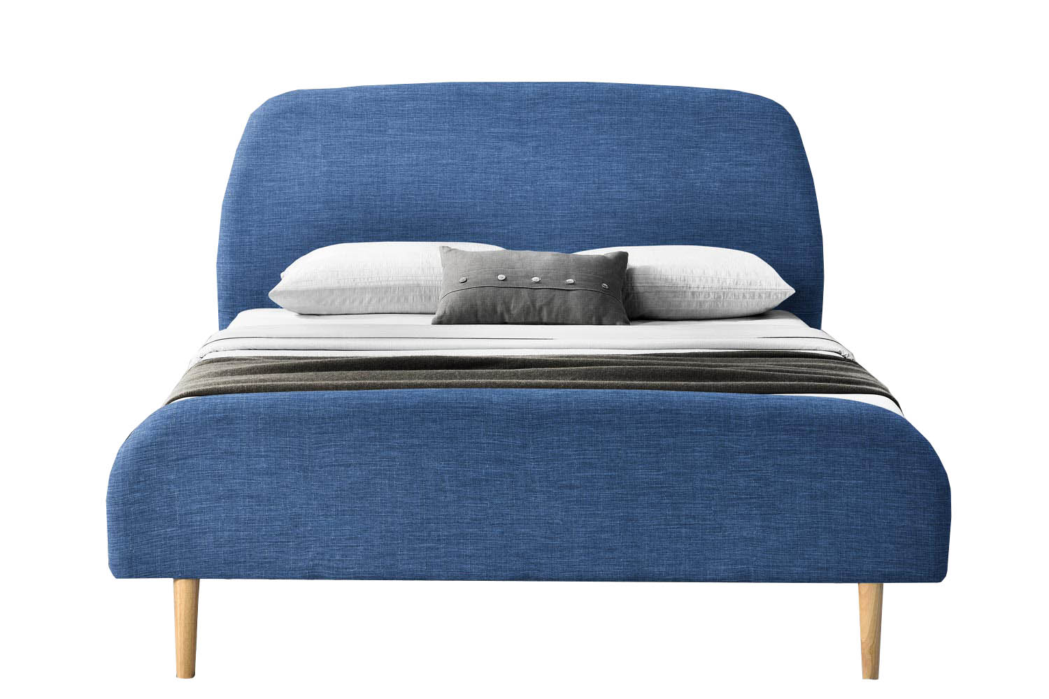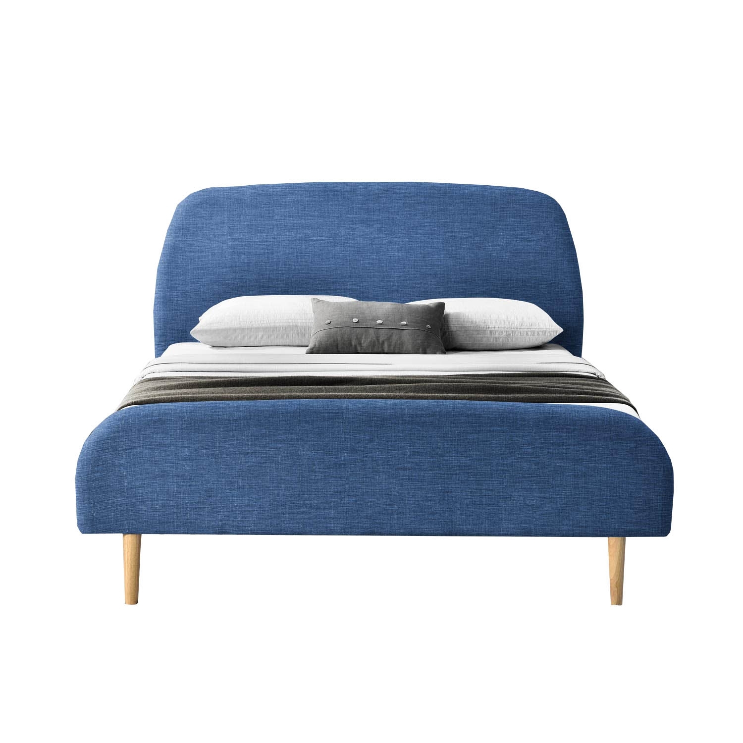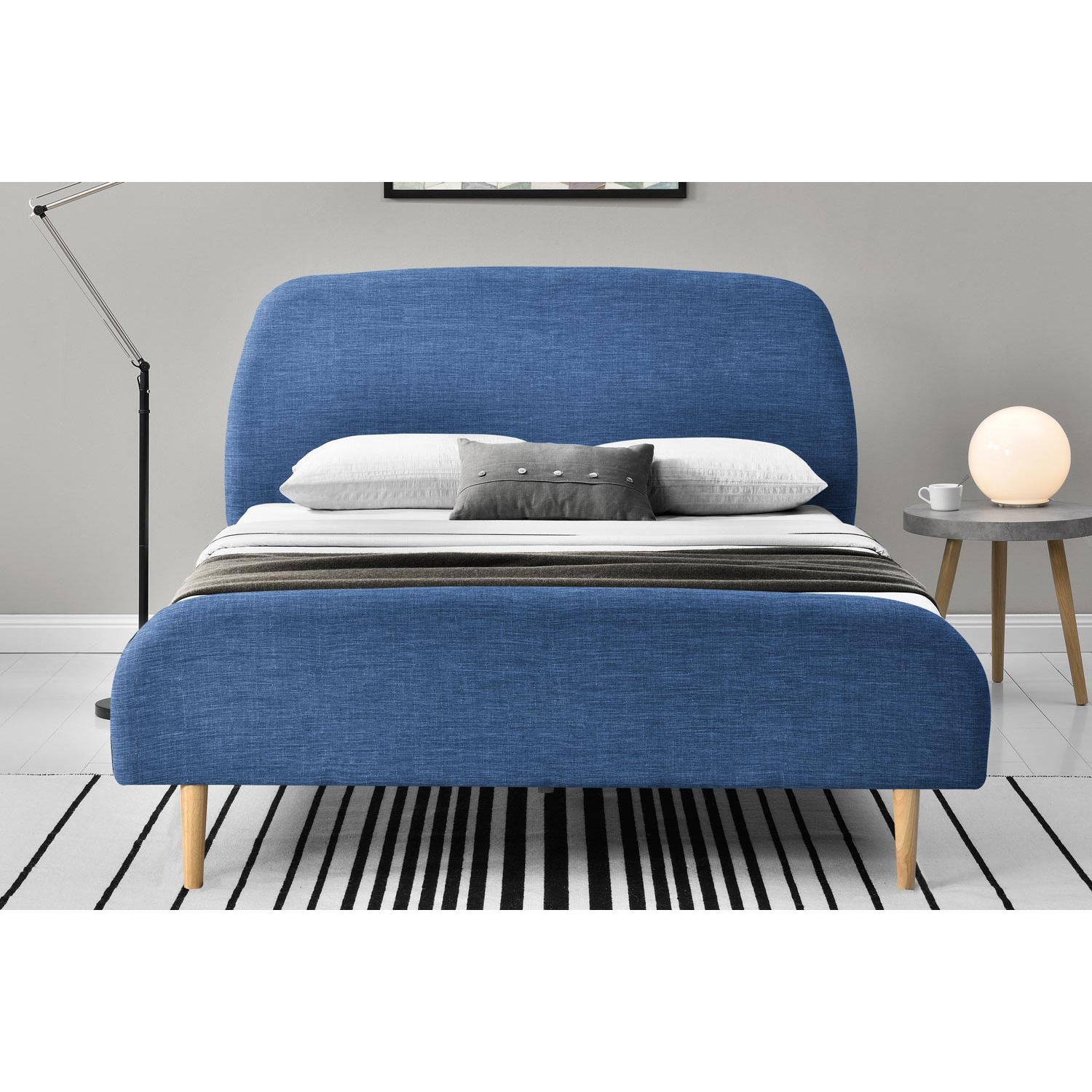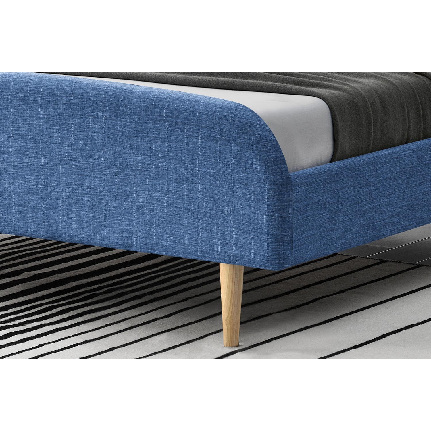 Lit Sandvik Tissu - Cadre de lit scandinave Bleu avec pieds en bois -