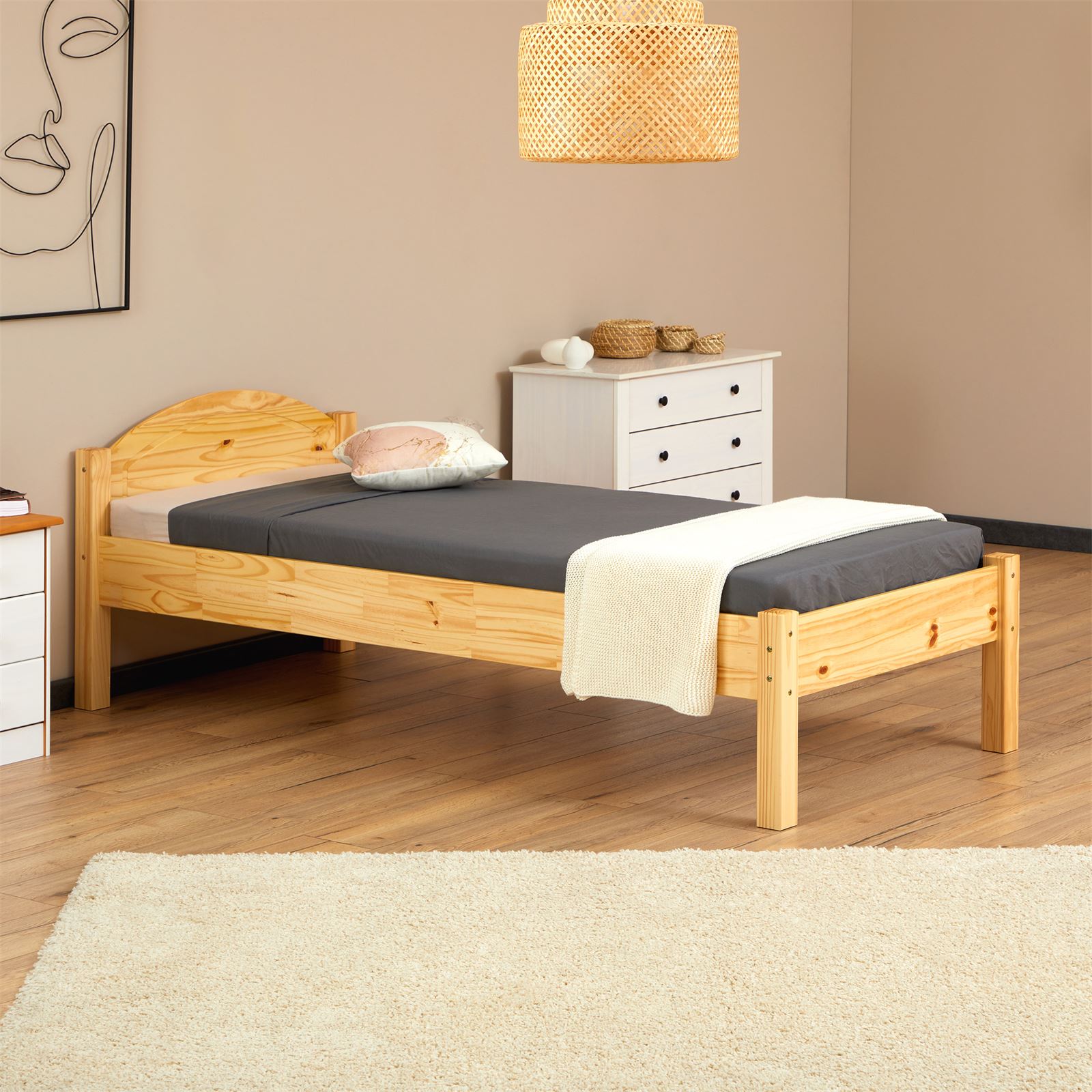 ... est le choix idéal pour meubler une chambre d'amis ou une chambre d'enfant. Son design classique et sa construction robuste lui permettent de s'adapter à tous les styles de décoration. Grâce à la tête de lit, vous pourrez vous installer confortablement dans votre lit pour lire ou regarder vos séries. Ce lit simple fabriqué en pin allie l'élégance intemporel et la durabilité du bois massif.