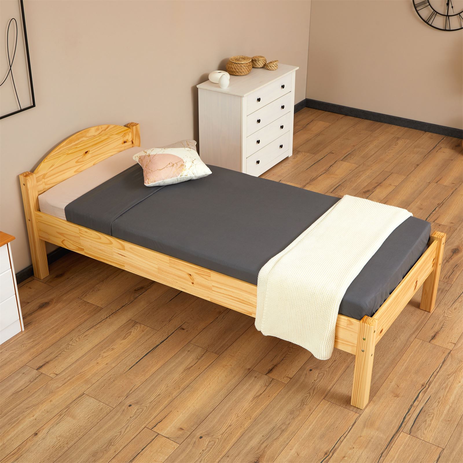 | Libellé | Lit simple 90x200 cm en bois massif vernis naturel SORAJA, lit 1 place pour enfant ou adulte |