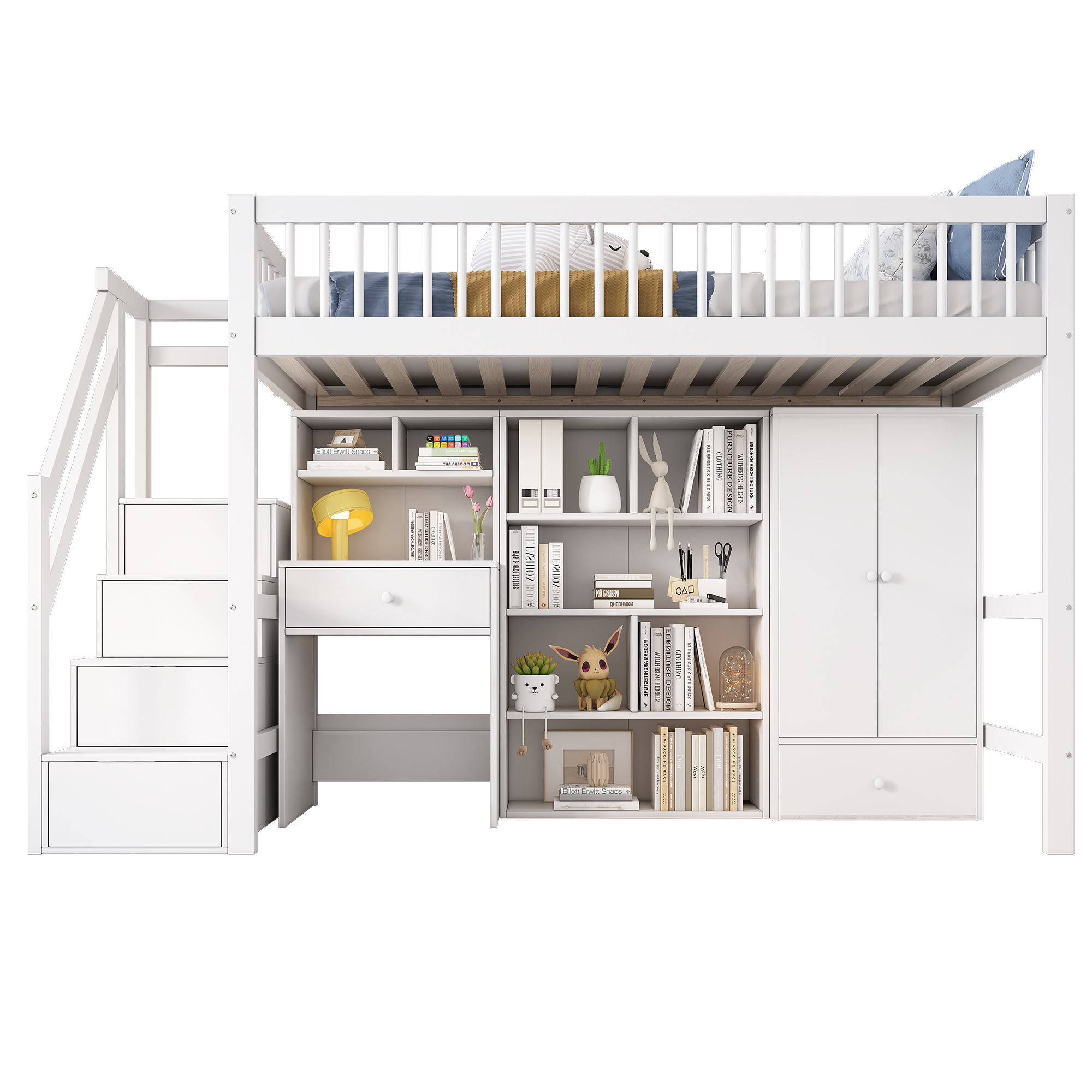 • ÉCONOMISEZ DE L'ESPACE : sous le lit avec un bureau, des tiroirs, une armoire, un placard, l'escalier peut également être stocké, beaucoup d'espace de stockage, une utilisation efficace de l'espace, en gardant les enfants avec suffisamment d'espace pour stocker des jouets, des livres et des vêtements, etc, la chambre bien rangée et ordonnée.