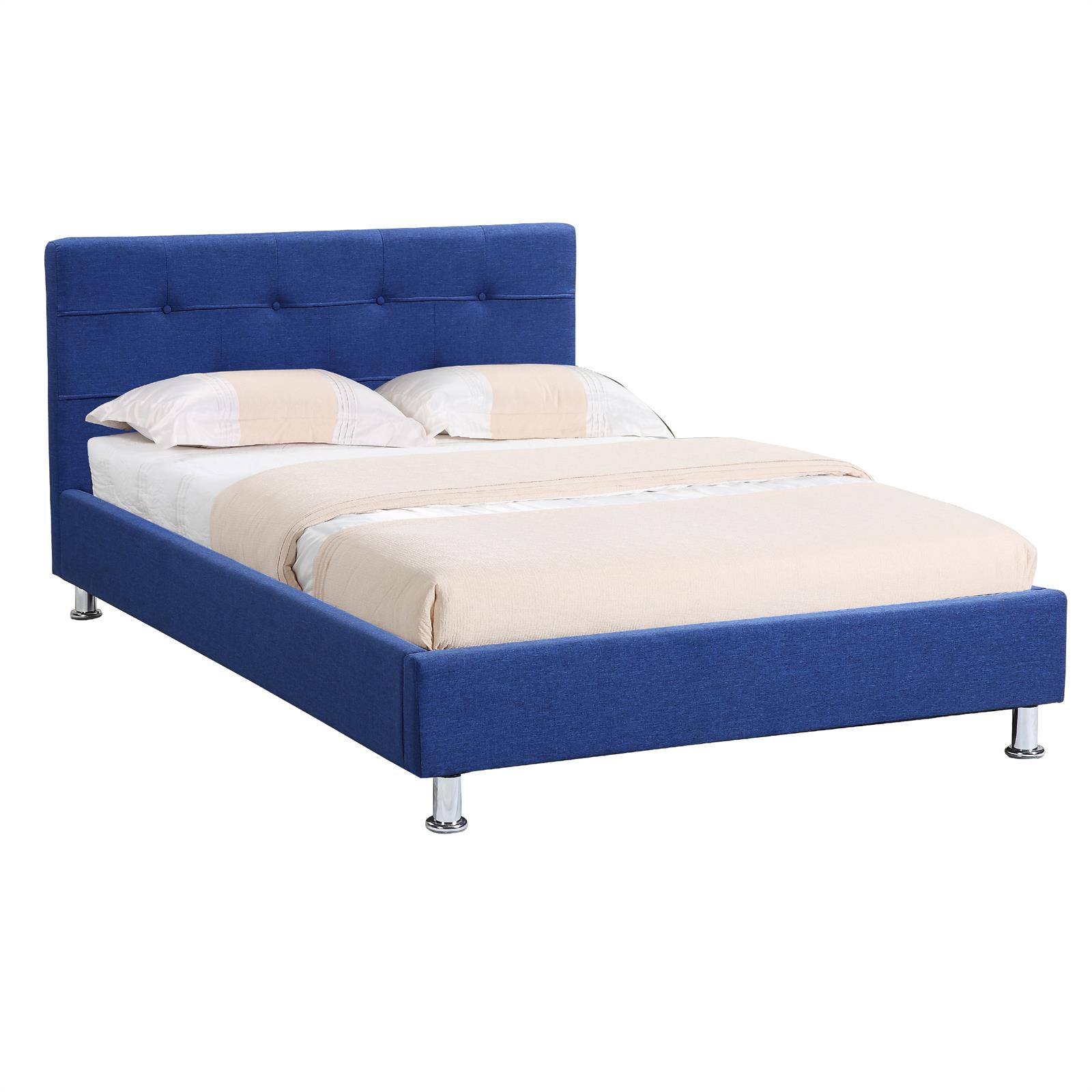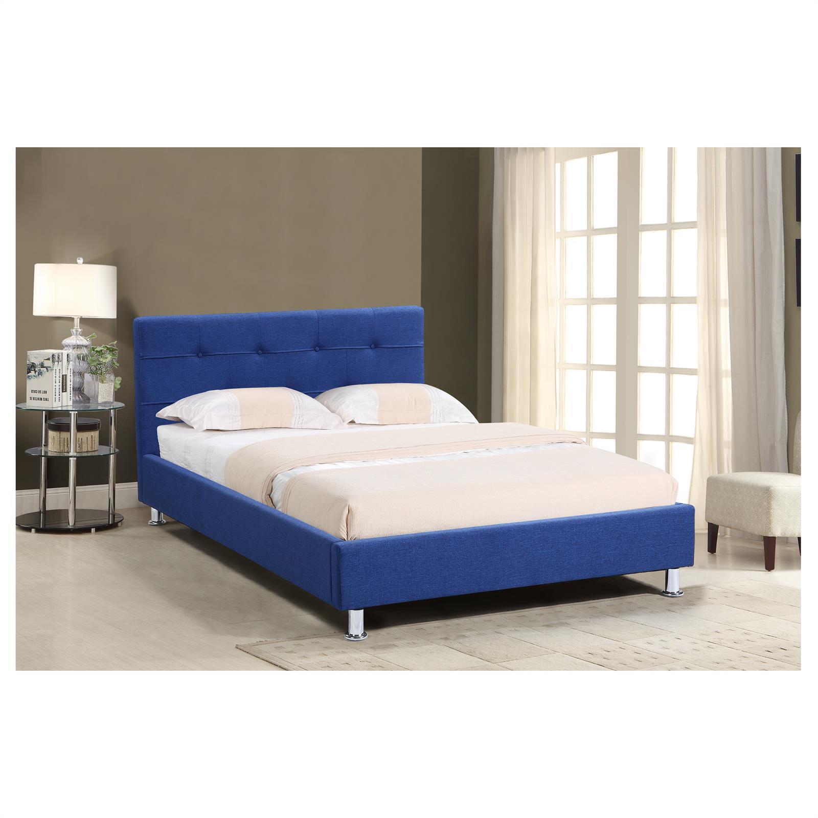 | Libellé | Lit simple pour adulte NIZZA cm 1 place et demi / 1 personne, avec sommier et pieds en métal chromé, tissu capitonné bleu |