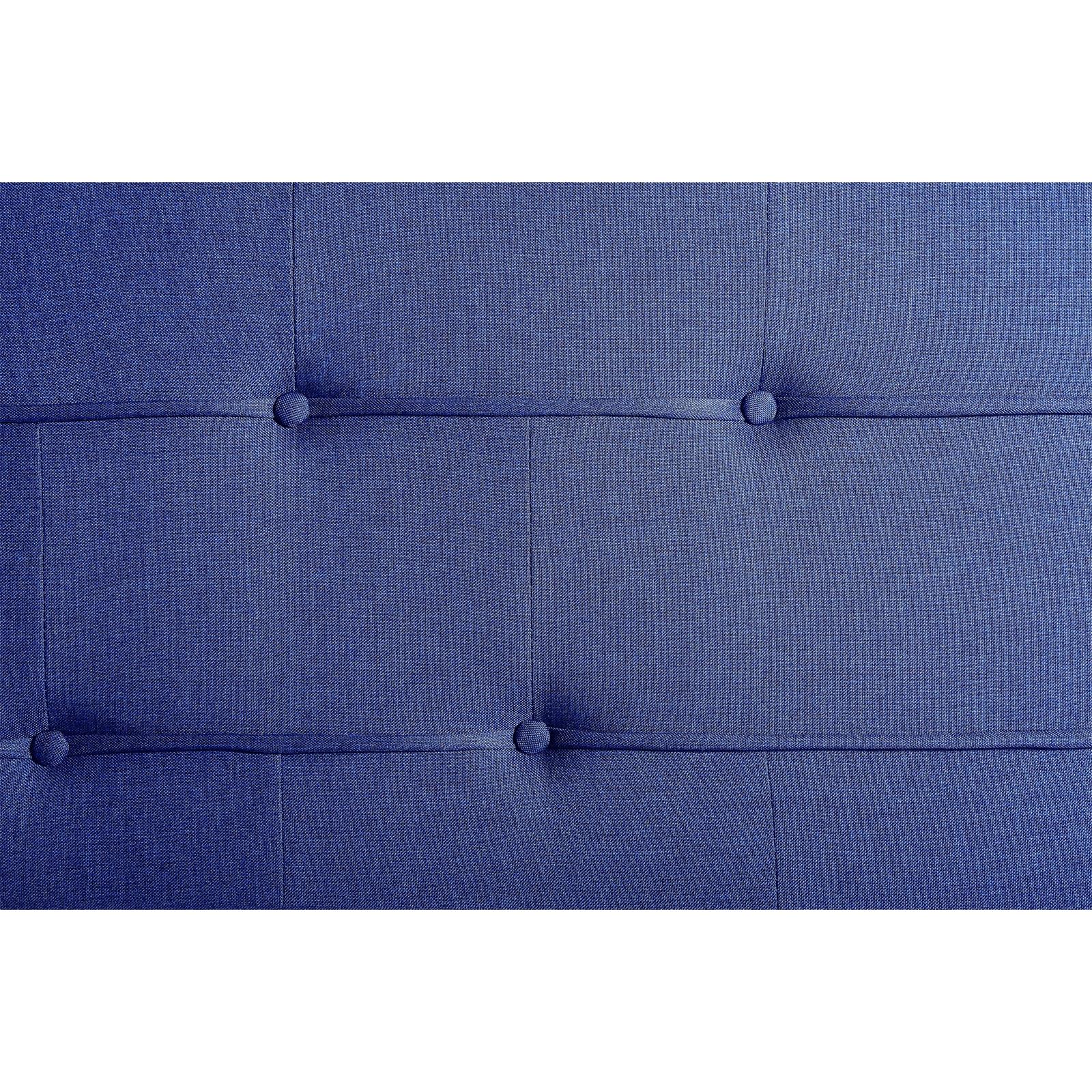 - La structure du lit est recouverte d'un revêtement en tissu capitonné de coloris bleu.