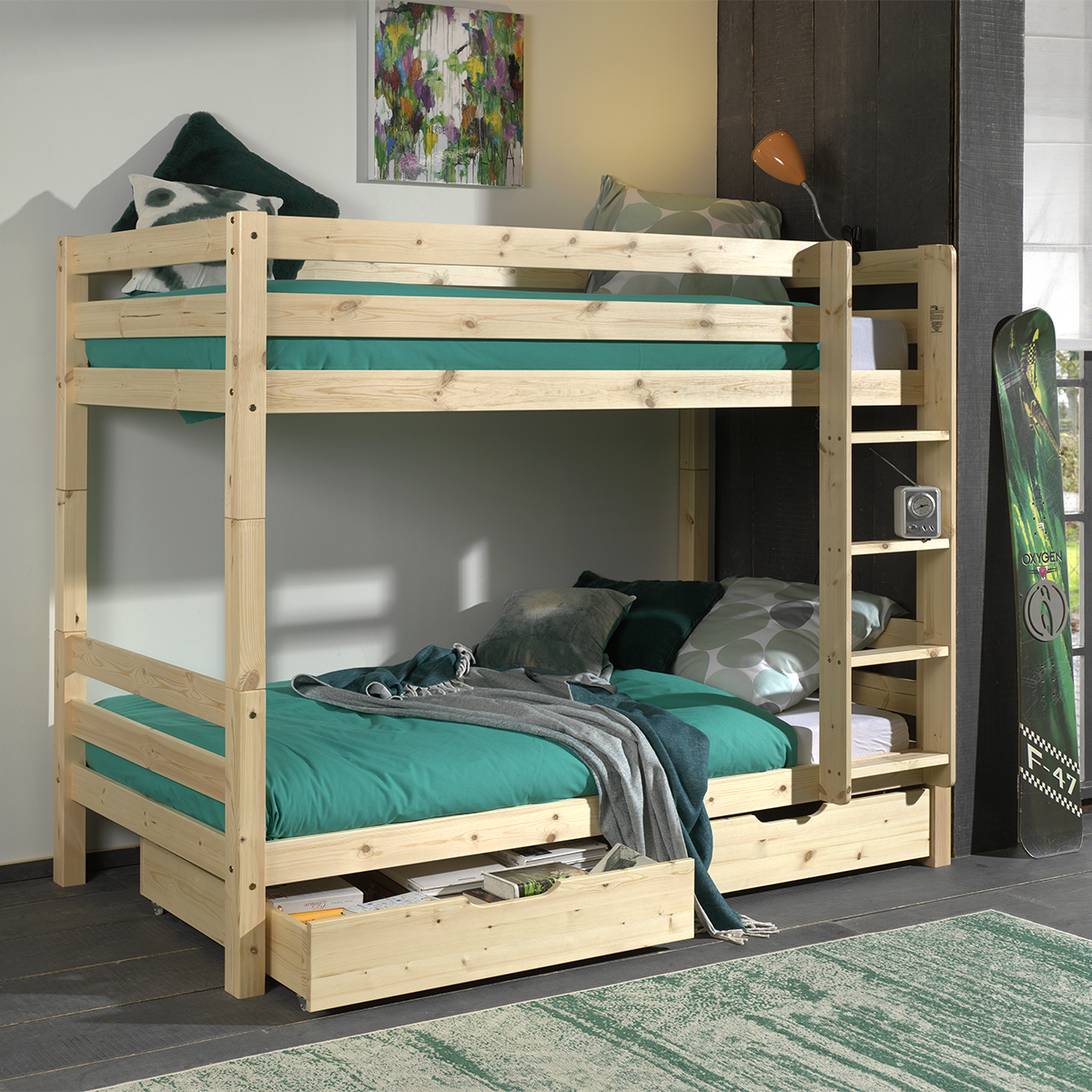 Lit superposé 90x200 pin massif clair Pino H 160cm