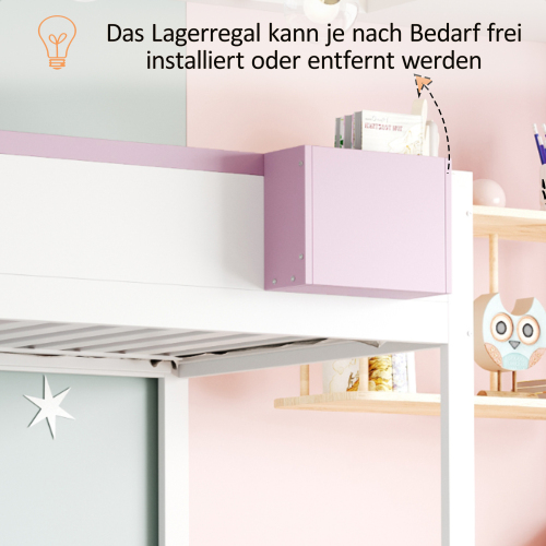 Ce lit superposé est fabriqué en bois massif robuste et arbore de jolis motifs de lapins et de carottes sur les barreaux du lit supérieur, apportant une touche de fantaisie à la chambre. Le lit supérieur comprend une étagère amovible offrant un espace de rangement supplémentaire pour les livres, les jouets ou les effets personnels. Le design bicolore des barrières de sécurité ajoute une note dynamique, tandis que la barrière de sécurité sur toute la longueur garantit une nuit de sommeil paisible et sécurisée.