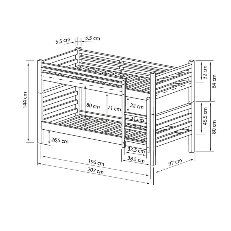 Peut être utilisé comme un lit superposé ou comme 2 lits simples.